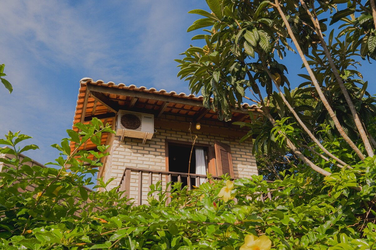 Enjoy beach life with the comfort of a home! This charming cottage offers stunning pool views from its balcony. Climb the Santos Dumont style staircase and find a cozy bedroom equipped with air and thermal-acoustic insulation. The fully equipped kitchen offer all the necessary amenities for a comfortable stay. Located just 350 meters from the beach, you can enjoy the sea breeze while enjoying the comfort of your own space. Come and experience the best of beach living!