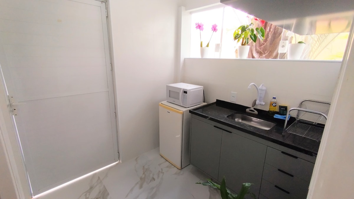 Nhà khách ở sân sau nhà tôi, tách biệt, lối vào hồ bơi riêng! - Tủ lạnh, lò vi sóng, nước khoáng, nồi chiên không dầu, máy pha cà phê và ấm đun nước điện: cà phê, cappuccino, trà và bánh mì phô mai cho bữa sáng! - Giường đôi, quạt trần, tủ quần áo - Ghế sofa tựa, bàn ăn và bàn làm việc - TV với 120 kênh + Netflix, Disney+, HBO Max, AppleTV và Globoplay - Một chỗ đỗ xe - Nhà hàng và cửa hàng trong khoảng cách đi bộ - Gần Lagoa do Taquaral