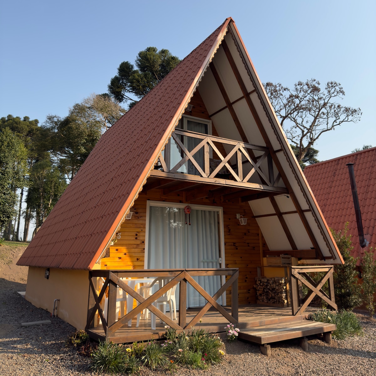 Cabin của chúng tôi là một nơi hoàn hảo để thư giãn và kết nối lại với thiên nhiên được bao quanh bởi araucaria và nằm cách trung tâm 6 km trên một con đường trải nhựa. Môi trường tích hợp với điều hòa không khí nóng/lạnh, vòi sen gas, máy sưởi, nhà bếp đầy đủ, TV thông minh, giường đôi Queen, giường sofa đôi cho khách bổ sung và khu vực ngoài trời có lò sưởi và đèn chiếu sáng. Bao gồm các vật dụng: khăn tắm, ga trải giường, sản phẩm vệ sinh, dụng cụ nấu ăn và xà phòng nước cho nhà vệ sinh