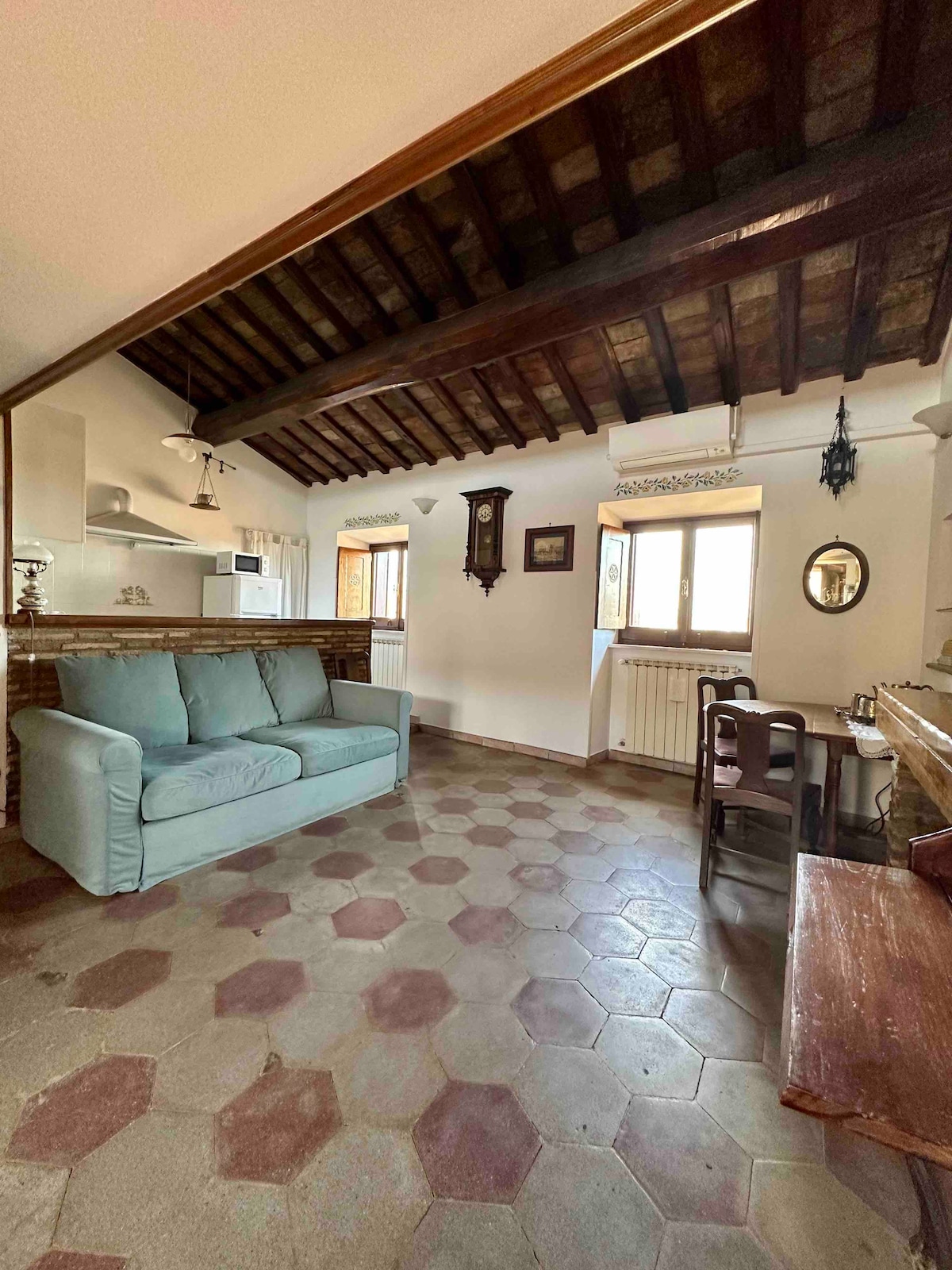 Căn hộ sáng sủa ở tầng 3 của tòa nhà 1500. Nó ngủ 2+2. Nó bao gồm phòng khách với nhà bếp và sofa giường, phòng ngủ và phòng tắm. Điều hòa nhiệt độ, yên tĩnh, được trang bị TV LCD và Wi-Fi. Căn hộ có lối đi thẳng đến tầng thượng đẹp với tầm nhìn, không gian này được dùng chung với căn hộ khác của chỗ ở của tôi luôn cho thuê trên trang web. Vị trí RẤT TRUNG TÂM, cách Piazza Campo de 'iori và Piazza Navona một quãng đi bộ ngắn.