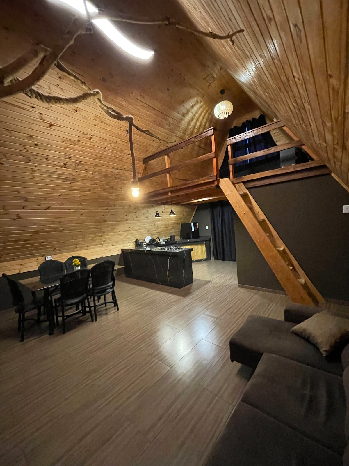 Feita por nós, está integrada a natureza e possui uma vista incrível, ideal para ver o nascer da lua e o pôr do sol, ficar a toa na banheira, no sofá ou debaixo de uma árvore, ela possui uma cama de casal e um sofá cama, TV Smart com Netflix e YouTube, frigobar, fogão, chuveiro e banheira de imersão a gás, tem churrasqueira e local para fogueira ao lado. Do estacionamento até a cabana tem uma subida de 50m, possui uma escada Santos Dumont inclinada para acesso ao segundo piso.