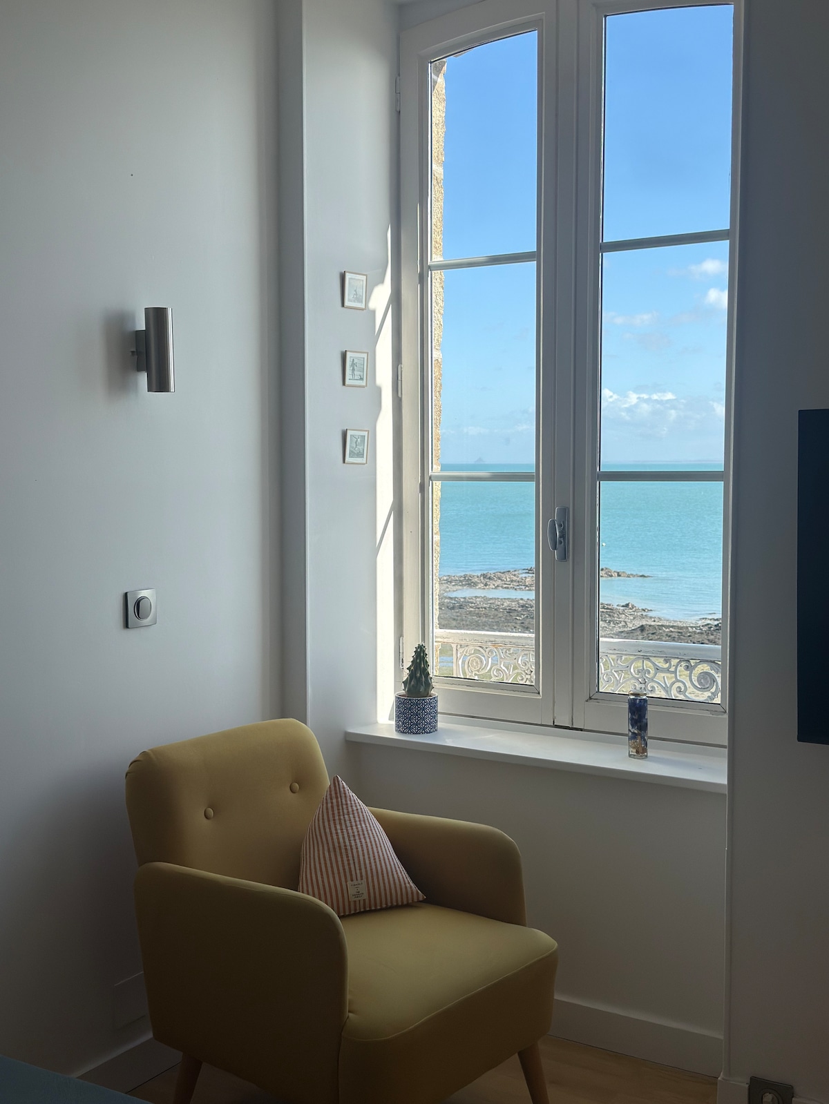 Nạp năng lượng trước bình xịt với tầm nhìn ra Mont St Michel! Studio 20 m2 của chúng tôi nằm dưới nhà chúng tôi (chính), có lối vào riêng, bao gồm một phòng ngủ với khu vực chỗ ngồi theo mô-đun trong khu vực ăn uống, phòng tắm, nhà vệ sinh riêng, bếp nhỏ (lò vi sóng, ấm đun nước, máy pha cà phê, nồi cơm điện trứng, tủ lạnh - không có đĩa). Tận hưởng tầm nhìn 180° ra biển và lối ra bãi biển, trung tâm hàng hải, nhà hàng và GR34 ngay trước cửa nhà bạn (Pointe du Grouin đi bộ). Insta: sea_lodge_cancale
