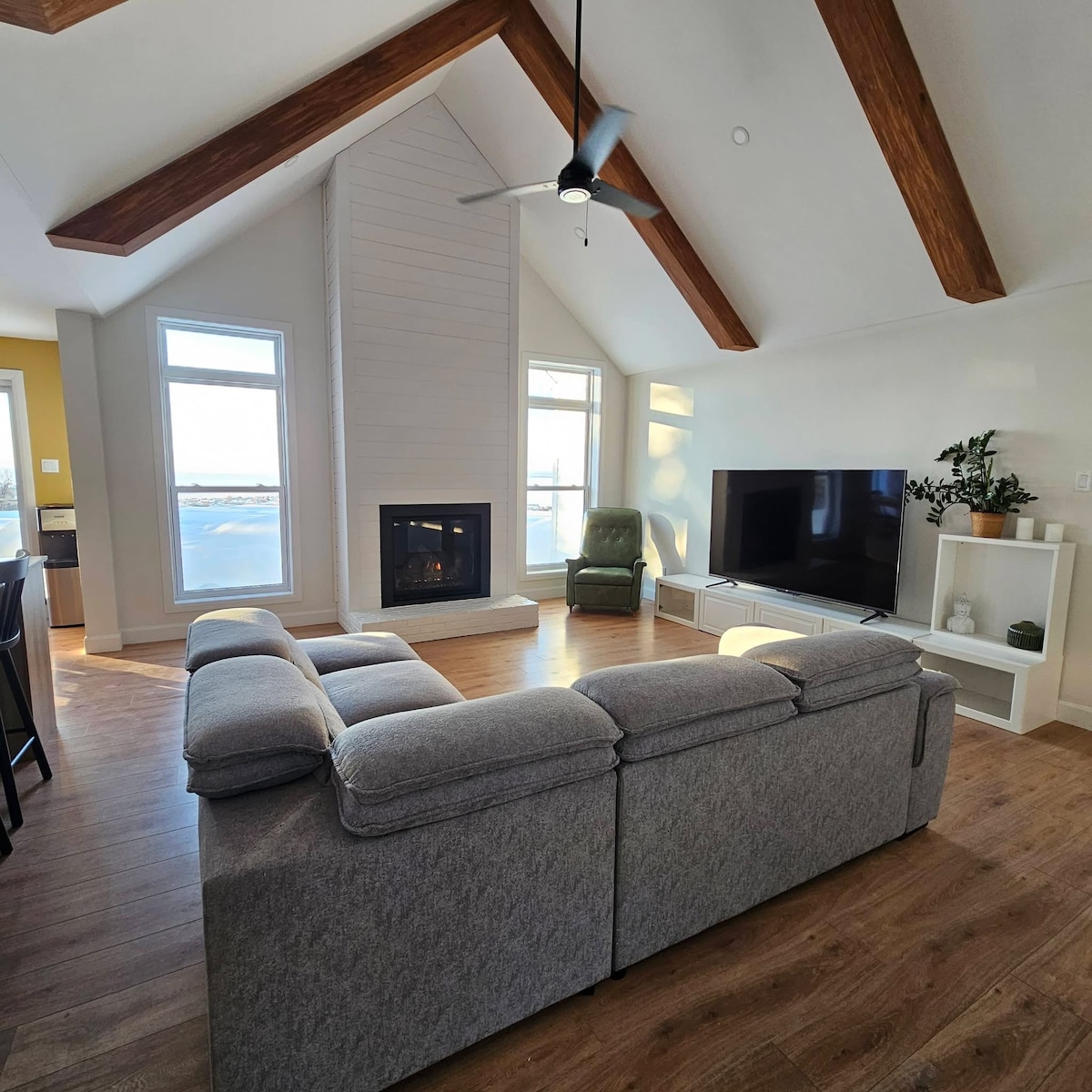 Situé au cœur du centre-ville, notre appartement coquet possède un cachet historique grâce à ses moulures et ses murs datant de 1939. Il offre une vue magnifique sur le fleuve et les couchers de soleil. Possédant deux chambres et un canapé lit au salon, il offre aussi toutes les commodités pour vous héberger lors de votre escapade dans notre magnifique région. Salle de bain récemment rénovée, climatisation, laveuse-sécheuse, draps de qualité, tout est là pour votre confort !