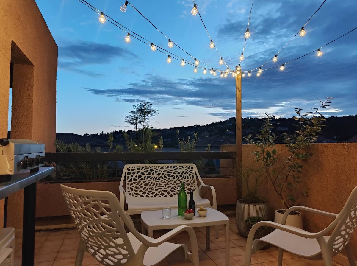 Căn hộ nghỉ dưỡng hiện đại có tầm nhìn ra biển, xếp hạng 3 sao, khoảng 50 m2, 2 phòng ngủ; tất cả các phòng đều nhìn ra sân thượng rộng 25 m2. GOODLIFEPRAMOUSQUIER Dịch vụ phòng ngủ chính cao cấp với TV thông minh, điều hòa không khí hai chiều, phòng tắm và bếp được trang bị đầy đủ tiện nghi. Chỗ đỗ xe riêng, bãi biển cách 5 phút đi bộ, đường dành cho xe đạp cách 150 m, Bộ đồ trải giường mới. Thiên nhiên và môi trường yên tĩnh Gần bãi biển, thuyền buồm, câu lạc bộ quần vợt. Đường mòn đi xe đạp leo núi gần đó