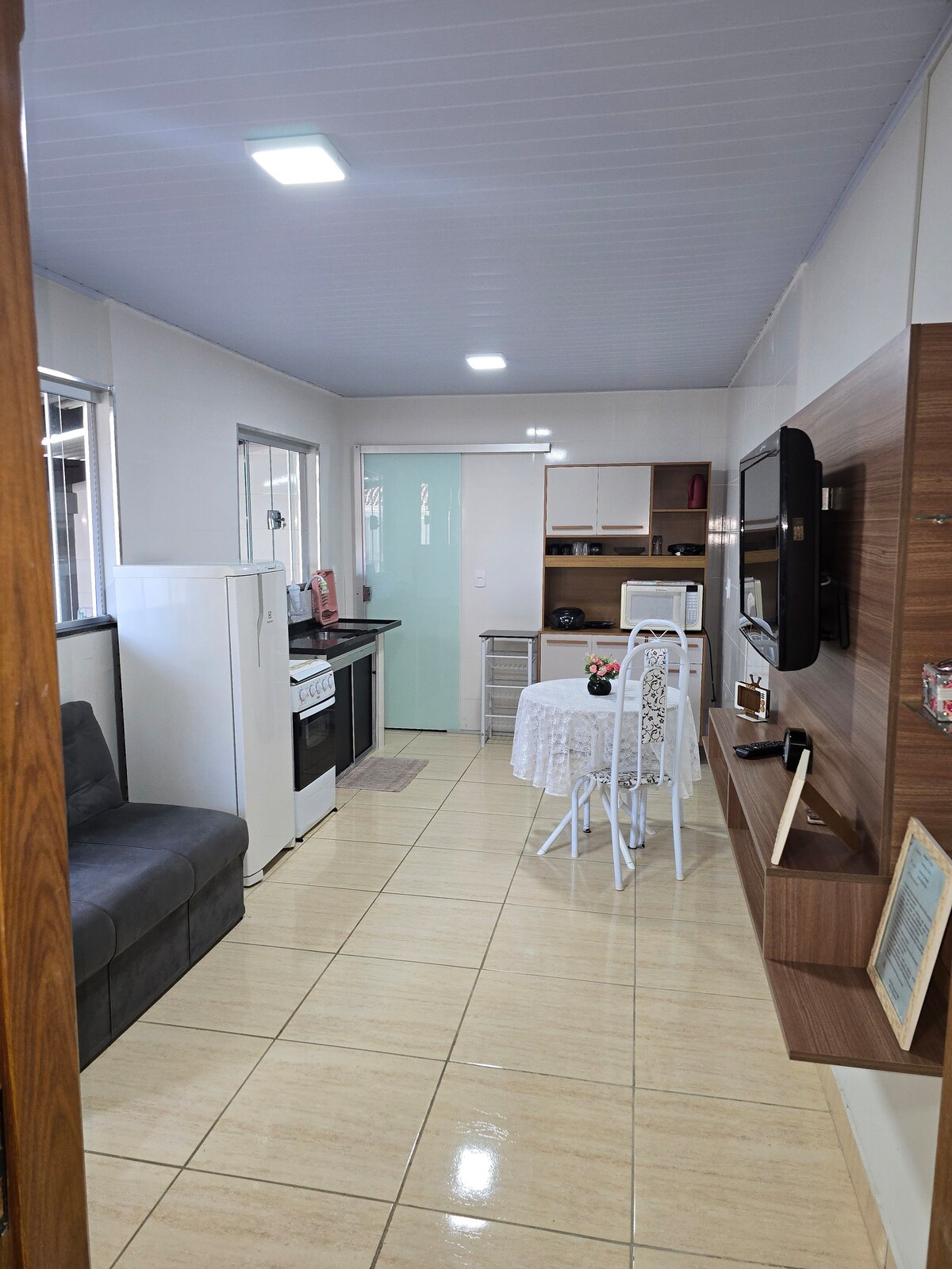 Tận hưởng sự thoải mái của căn hộ hiện đại và được trang trí này ở Franca-SP. Nó có 2 phòng ngủ, 1 phòng tắm, phòng khách và phòng ngủ với TV thông minh và nhà bếp được trang bị. Có sẵn: TV, giường có chăn và tấm lót, bàn là, lò vi sóng, máy pha cà phê, nồi chiên không dầu, máy xay sinh tố, nồi, đĩa, ly, tất cả ly mới! Căn hộ chung cư cung cấp dịch vụ giải trí hoàn chỉnh, với phòng tập thể dục và briquedoteca được phát hành để sử dụng gara. Dễ dàng đến Unifran, Đại lộ Champagnat. Vị trí tuyệt vời. Estadia incrivel đặt trước já