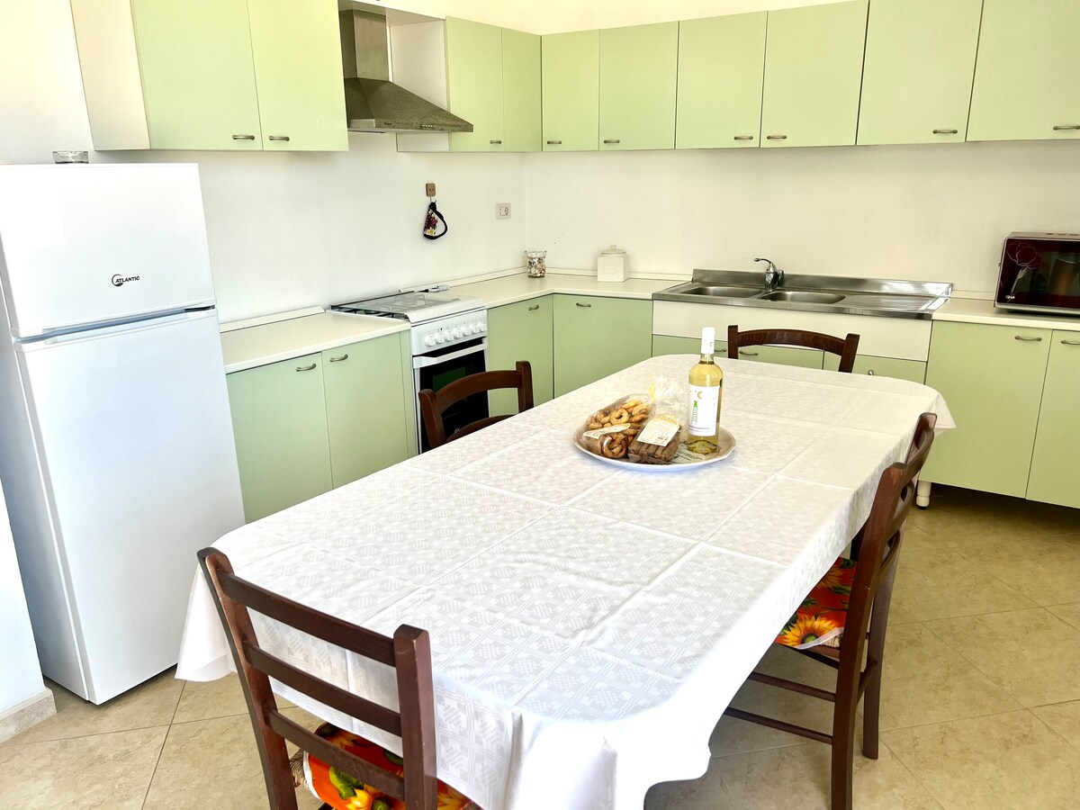 Accogliente appartamento su 2 livelli 🏡 Casa organizzata in modo funzionale e confortevole: •Zona notte con 2 camere da letto e bagno completo con ampia doccia •Zona giorno con open space climatizzato: soggiorno, cucina attrezzata, zona pranzo e angolo caffè •Secondo bagno completo con lavatrice 🌿 Ampio spazio esterno recintato, perfetto per rilassarsi all’aperto, e parcheggio privato incluso. 🌅 Il mare A pochi passi, mare cristallino con scogliera bassa e facilmente accessibile.