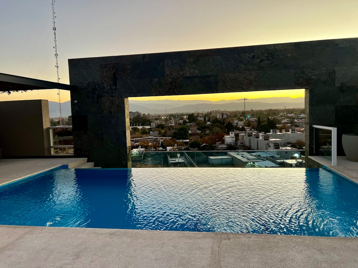 Departamento Valley Suites ở Torres San Jose hiện đại, cung cấp các căn hộ cao cấp với sân thượng tầm nhìn 360° ở San Juan và Núi Andes. Tận hưởng các tiện nghi chung như hồ bơi vô cực, phòng tập thể dục, phòng họp riêng và sân thượng toàn cảnh. Nằm cách các điểm tham quan chính như Teatro Bicentenario và Parque de Mayo chỉ vài phút và cách một trong những khu vực ẩm thực tốt nhất 800 m. Trải nghiệm sự thoải mái và riêng tư tại Valley Suites. Đặt ngay!