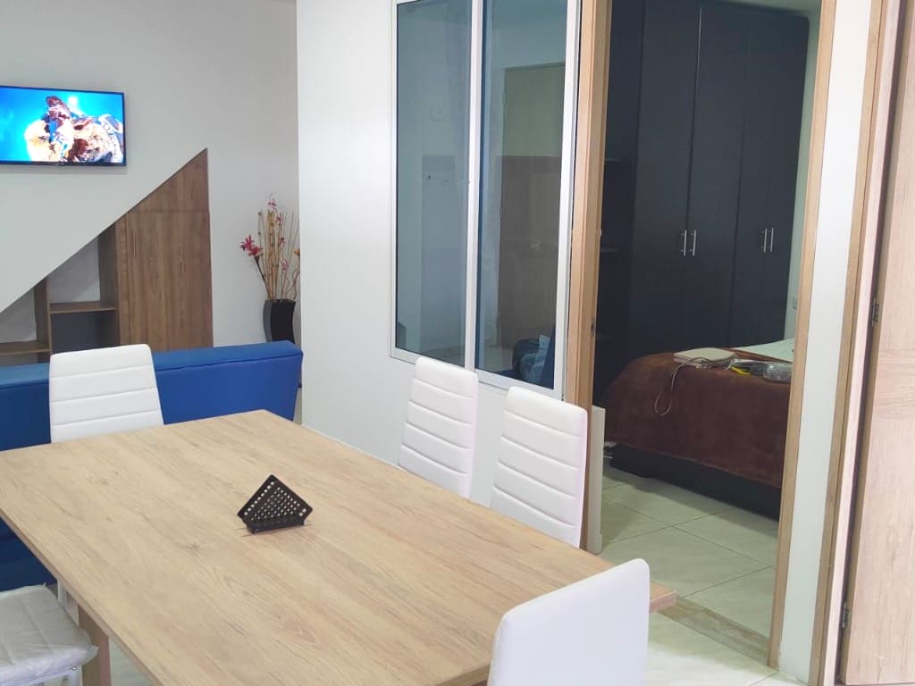 ✨ Căn hộ studio ấm cúng ở Neiva Tận hưởng sự riêng tư và tự chủ trong căn hộ studio này, nằm trong khu phố yên tĩnh với khu vực cây xanh. Bao gồm: Wi-Fi. Giường 120 cm trong phòng ngủ Sofa giường trong phòng khách TV 49" Máy pha cà phê, bếp, lò vi sóng và tủ lạnh Quạt, phòng giặt ủi và bàn là 🌿 Cảm thấy như ở nhà với tất cả các tiện nghi ở mức giá thấp. Hãy biến Neiva thành điểm khởi đầu của bạn để khám phá Huila: Sa mạc Tatacoa, Bãi biển Juncal, San Agustin và suối nước nóng.