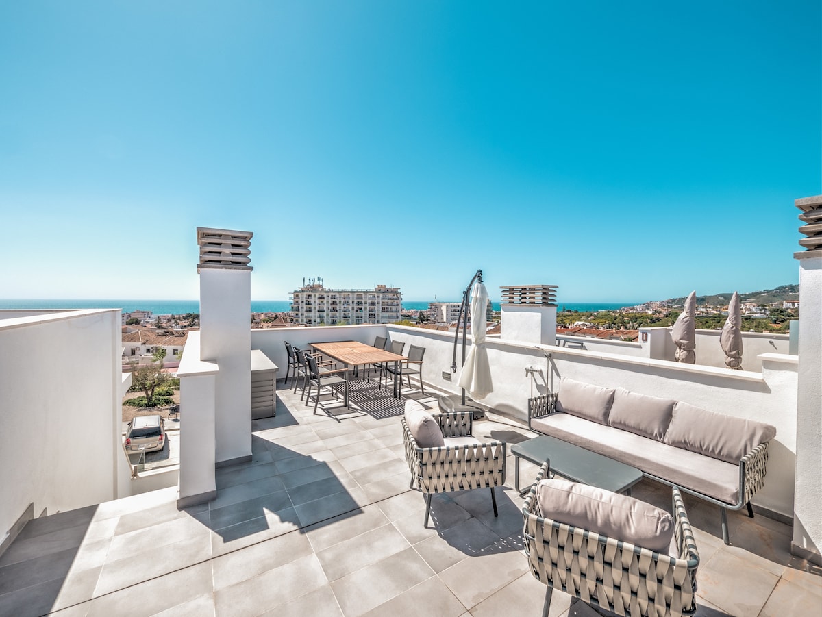 The property has amazing sea views from every room. From the terrace you can enjoy 180 degrees of sea view with sun all day. The apartment is easy to access, with no stairs (just one step) and free parking on the street outside. There is a great pool close to the property (open early Apr to late Oct) and the closest beach (el Playazo) is 700 meters away and goes 1.5 km towards center of Nerja. It takes around 5 minutes to drive into the center of Nerja.