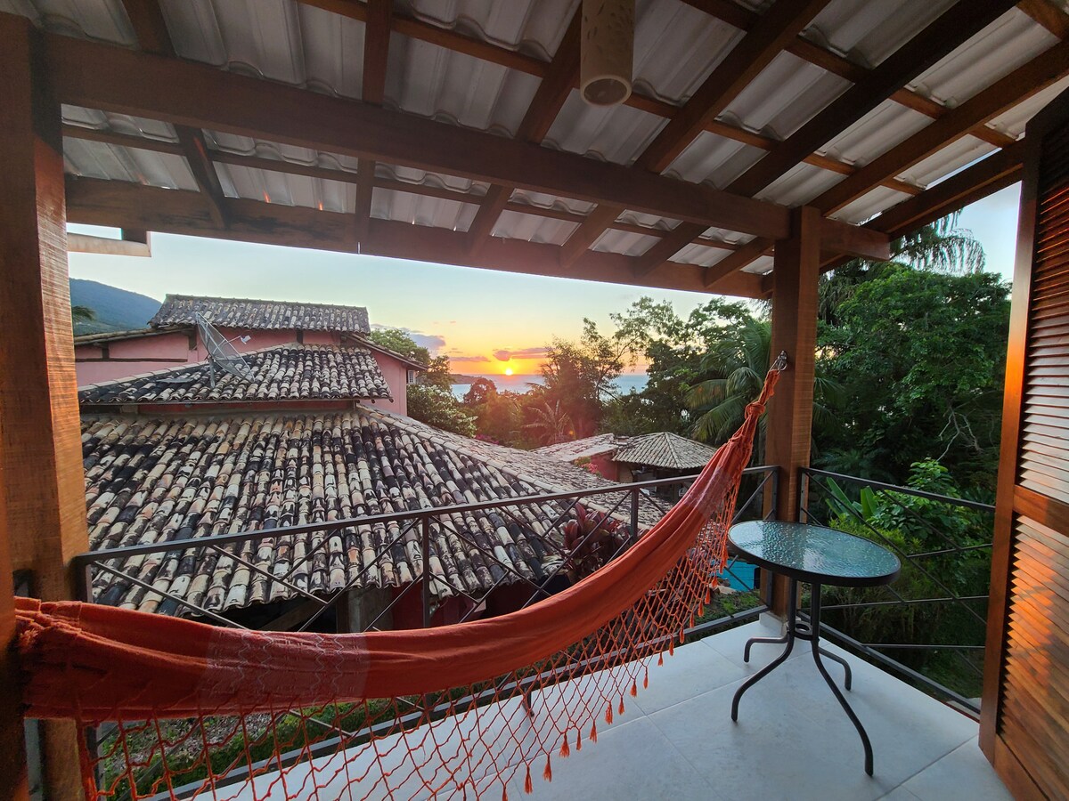 Hãy tưởng tượng một khung cảnh hoàn hảo... Bạn đã tìm thấy nó! Ilha Mar Suite chắc chắn là lựa chọn tốt nhất của bạn ở Ilhabela. Nó có một ban công lớn với một võng đôi, bàn và hai băng ghế — tất cả được thiết kế để cung cấp một tầm nhìn tuyệt vời ra biển và hoàng hôn! Phòng suite có giường queen, tủ quần áo, điều hòa, quạt trần, minibar, TV 50 inch, dây phơi quần áo, ấm đun nước, 2 tách và 2 ly, cho phép khách chuẩn bị cà phê sau một ngày tuyệt vời tại thiên đường này.