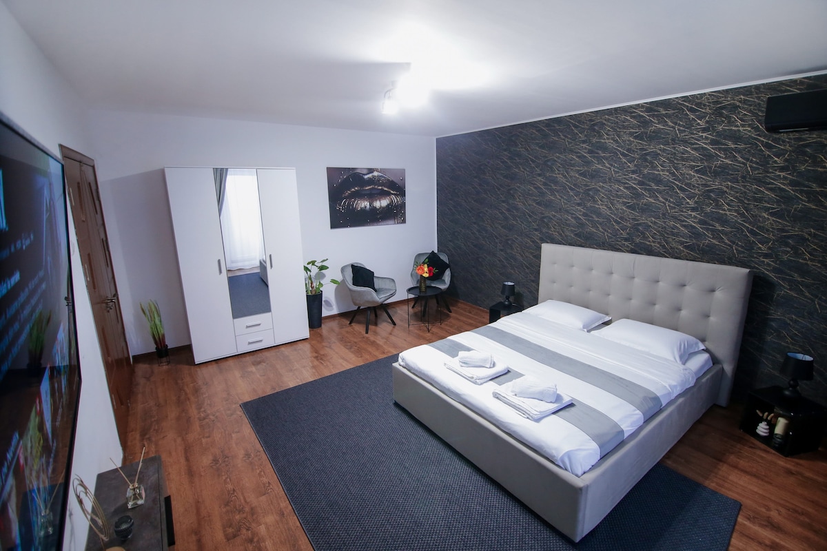 Studio nằm ở trung tâm thành phố, gần Chợ Giáng sinh, Đại học, Quảng trường Trung tâm, nhà hàng và công viên. Studio có phòng ngủ rộng rãi với giường cỡ king và giường sofa, bếp đầy đủ tiện nghi, phòng tắm lớn và ban công. Bãi đỗ xe miễn phí trên đường phố. Chỗ ở được thiết kế với ý tưởng cung cấp một không gian thoải mái cho các cặp đôi, gia đình, khách đi một mình hoặc đi công tác đang tìm kiếm một kỳ nghỉ đáng nhớ ở Craiova.