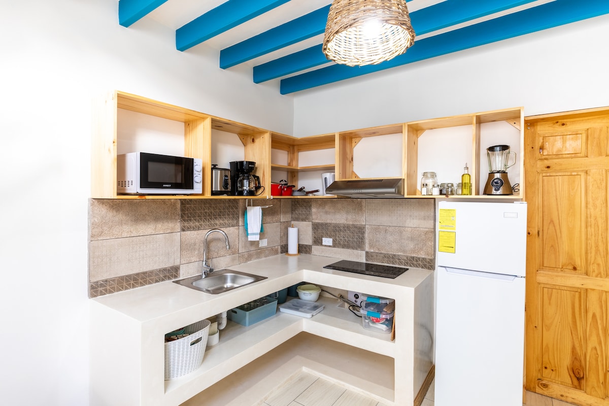 Welcome to "Mar Itzá," your cozy getaway where beauty meets comfort. Designed with an open and airy feel, this space is perfect for kicking back and soaking up the laid-back beach vibe. The bright interior, accented with touches of blue, mirrors the clear skies and ocean nearby. Just a quick two-minute walk and you'll find yourself on the main street of Jaco. When the sun sets, you're equally close to the main street's variety of dining and nightlife options. Thank you for choosing us!