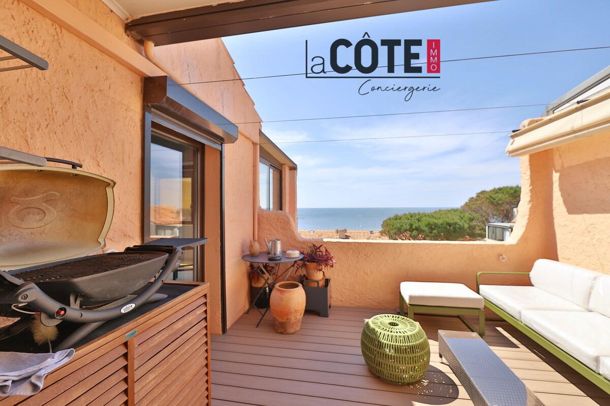 superbe appartement avec une vue à couper le souffle sur la mer..Au 1er étage d'une résidence avec place de parking et gardien.Une entrée par la mer, une par la ville.Portail automatique. Gare à moins de 5mn à pieds le port à 2 pas. marché le dimanche.superbe corniche pour les sportifs et les randonneurs. Terrasse de 36m2,toute équipée avec plancha.2 chambres une avec lit 160×200 à l étage avec rangements +draps. Salle d eau avec grande douche+serviettes et WC Cuisine équipée.