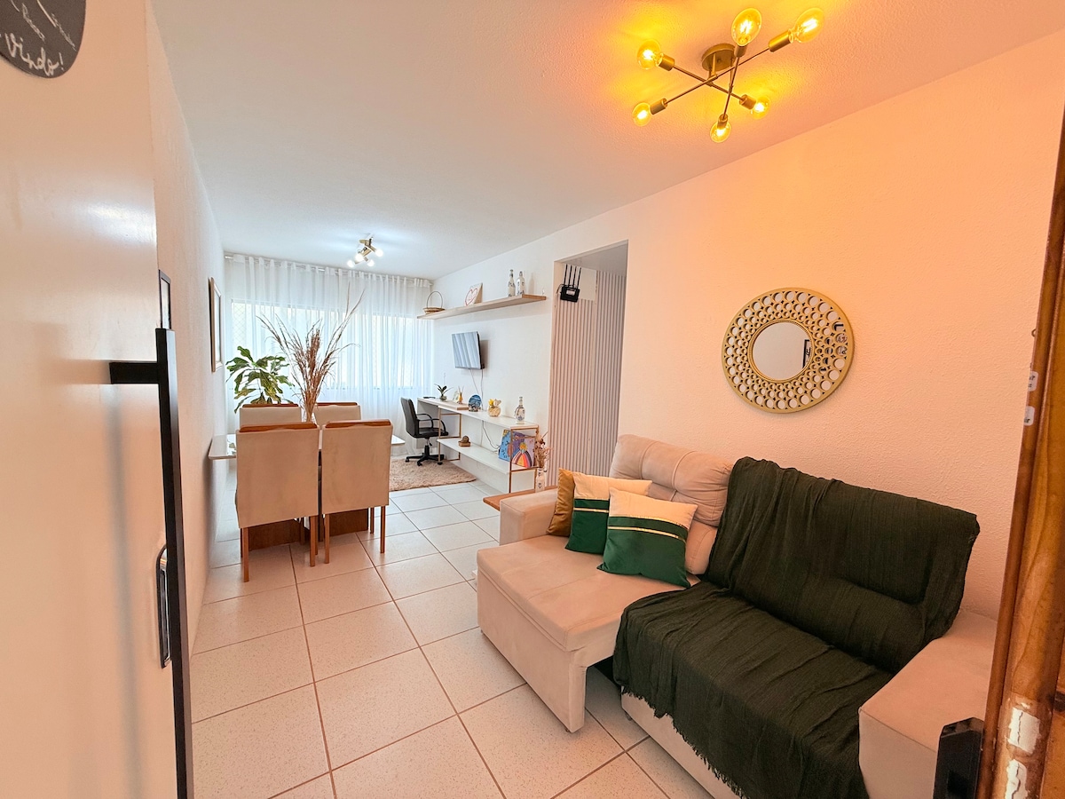 Chỗ ở gốc với 1 giường đôi trong phòng ngủ và trong phòng khách, ghế sofa Bicama ngủ tốt cho tối đa 4 người. - Cách trung tâm mua sắm Caruaru 500 mét 🛍️ - Cách 400 m từ Point do caldinho 😏 - Cách tiệm bánh 300 mét 🥯 - Cách sân Sự kiện Caruaru 5 m lái xe - 8 m lái xe đến Hội chợ thủ công Caruaru 👒