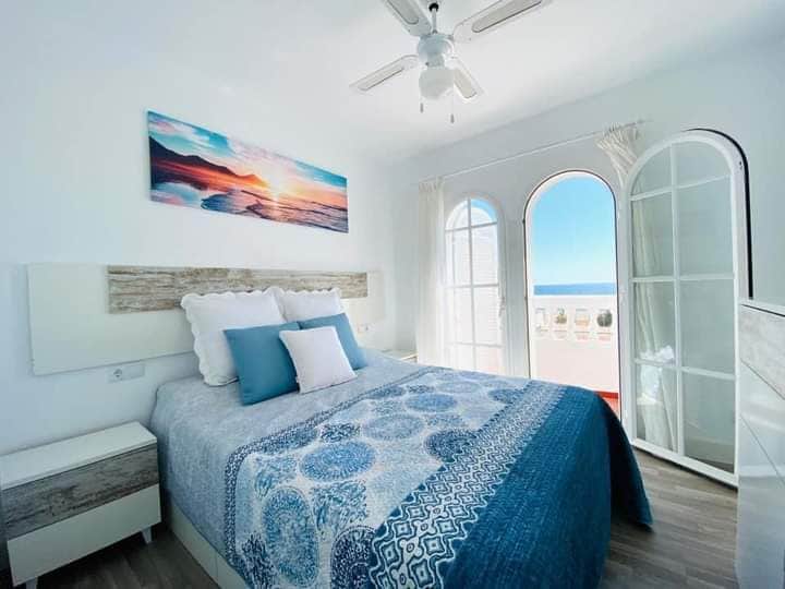 Nhà bãi biển rộng rãi ở tuyến trước 2 giường/2 phòng tắm (tối đa 4+1 trẻ em) trên hai tầng với sân thượng riêng lớn. Tầm nhìn rộng không bị gián đoạn trên biển Địa Trung Hải rõ ràng đến châu Phi. Chỉ cách bãi biển vài mét. Vườn cỏ được cắt tỉa cẩn thận trưởng thành với cây cọ và biên giới hoa xinh đẹp. Hai hồ bơi chung lớn. Cổng ra đường ven biển đi thẳng ra bãi biển. Riêng tư với cửa trước riêng trong cộng đồng có cổng an toàn có bãi đỗ xe. SAT TV, Wifi, điều hòa không khí/hệ thống sưởi. Nhà hàng trên bãi biển trong khoảng cách đi bộ