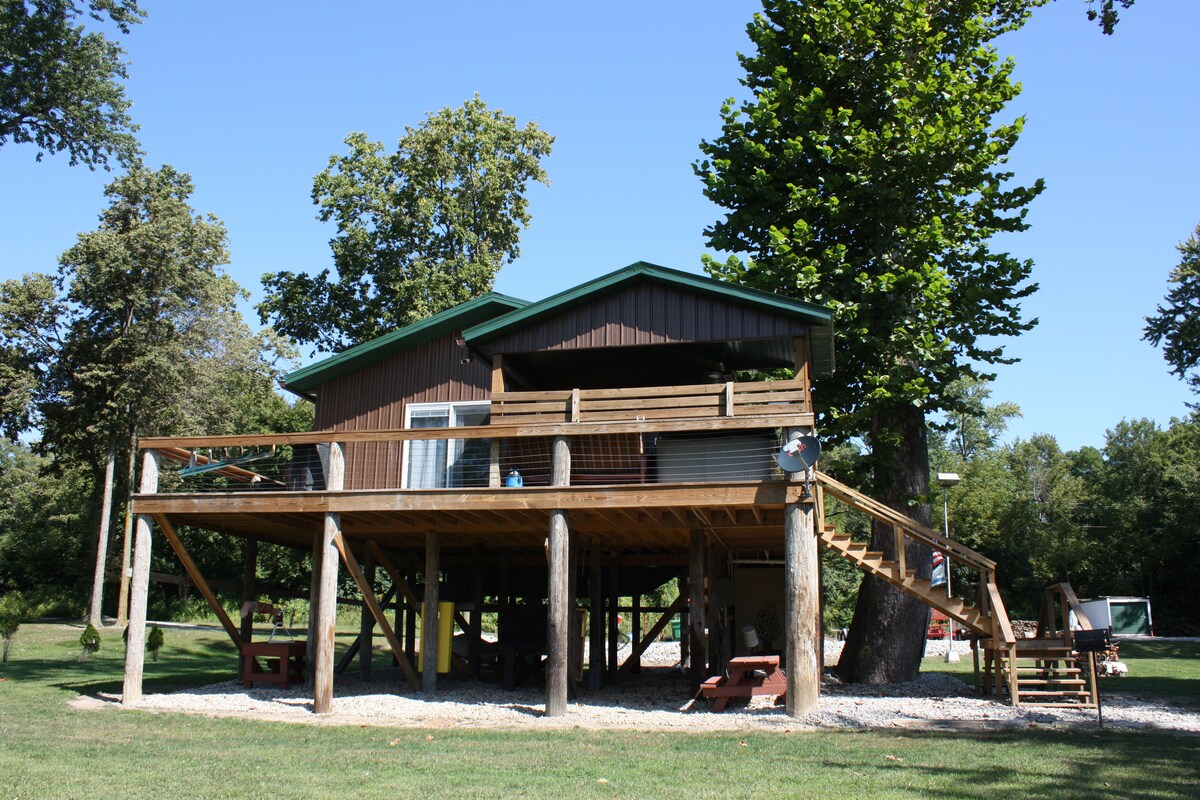 Bring yourself to the comfort and peacful cabin elevated above the Wabash River . Sit yourself in the hot tub over looking the river.Taking in the view of soaring Bald Eagles. Wind rustling in the Sycamore. Whitetail deer crossing the river. The popping of your campfire . This cabin treehouse has all the amenities you would expect . Spacious wrap around deck . Please understand we have a hot tub fee of $120 collected upon arrival .