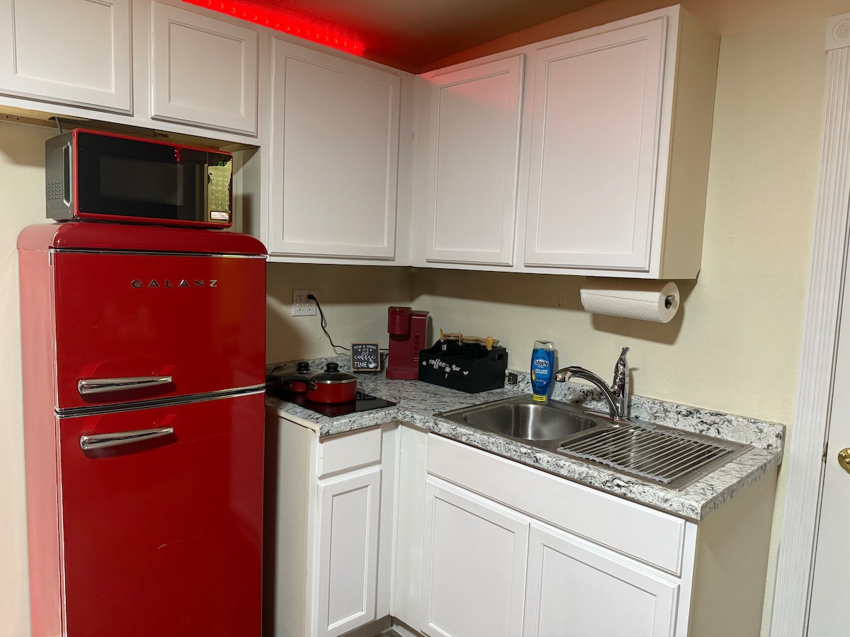 Studio cực kỳ sạch sẽ, thân thiện với công việc này nằm gần Sân vận động State Farm, Đại học Grand Canyon và nhiều chuyến đi bộ đường dài tuyệt vời. Nó bao gồm tủ lạnh, lò vi sóng, lò sưởi, lò nướng bánh mì và Keurig trong bếp nhỏ được trang bị của chúng tôi. Nó cũng có giường king, bồn tắm đầy đủ, ánh sáng tuyệt vời, khu vực tiếp khách, TV 50 inch và bàn. Studio được gắn liền với nhà của chúng tôi, nhưng bạn sẽ có chỗ đỗ xe dành riêng, lối vào riêng và cách âm bổ sung để tận hưởng sự riêng tư cho công việc hoặc thư giãn.