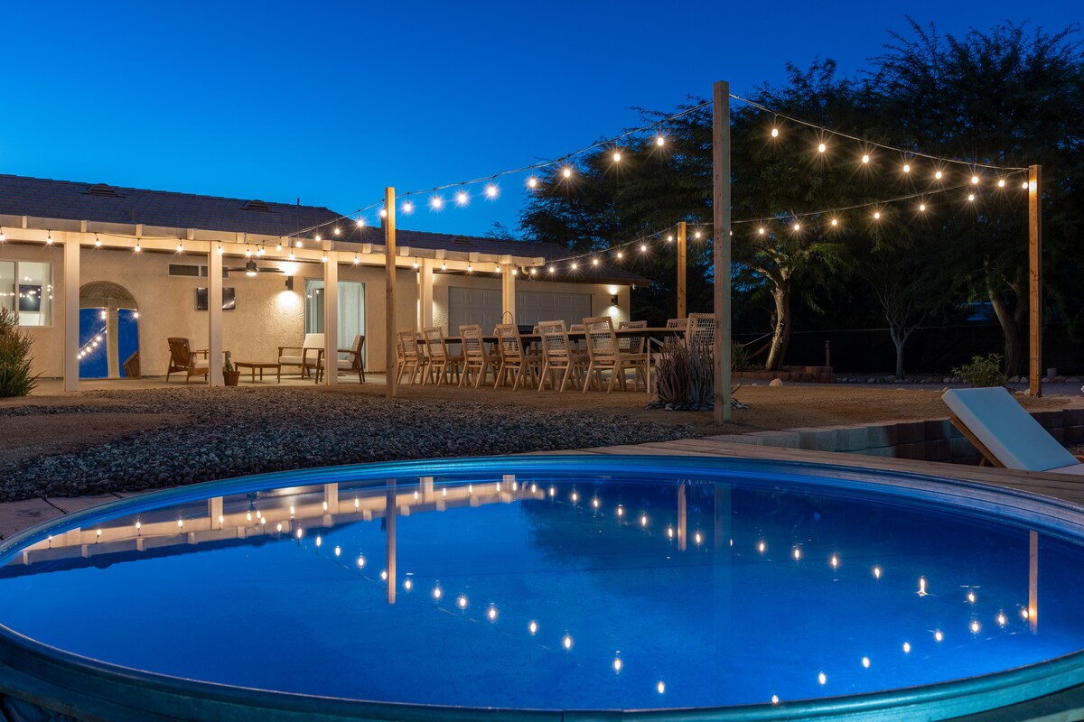 Desert Moon có tất cả các tiện nghi độc đáo được ưa chuộng ở Joshua Tree gần đó nhưng trong vòng 10 phút lái xe đến các thành phố nổi tiếng Palm Springs hoặc Palm Desert. Chỉ cần ra khỏi con đường bị đánh đập từ đường cao tốc, khi nhóm của bạn đến, bạn sẽ có 1 mẫu đất riêng tư để trải nghiệm những giấc mơ sa mạc của mình. Ngâm mình trong hồ bơi cao bồi 10ft hoặc thư giãn trong Bồn tắm nước nóng dưới những vì sao. Bên trong được thiết kế bởi một nhóm Airbnb Plus và được trang bị để tạo sự thoải mái. Số giấy phép: 000942