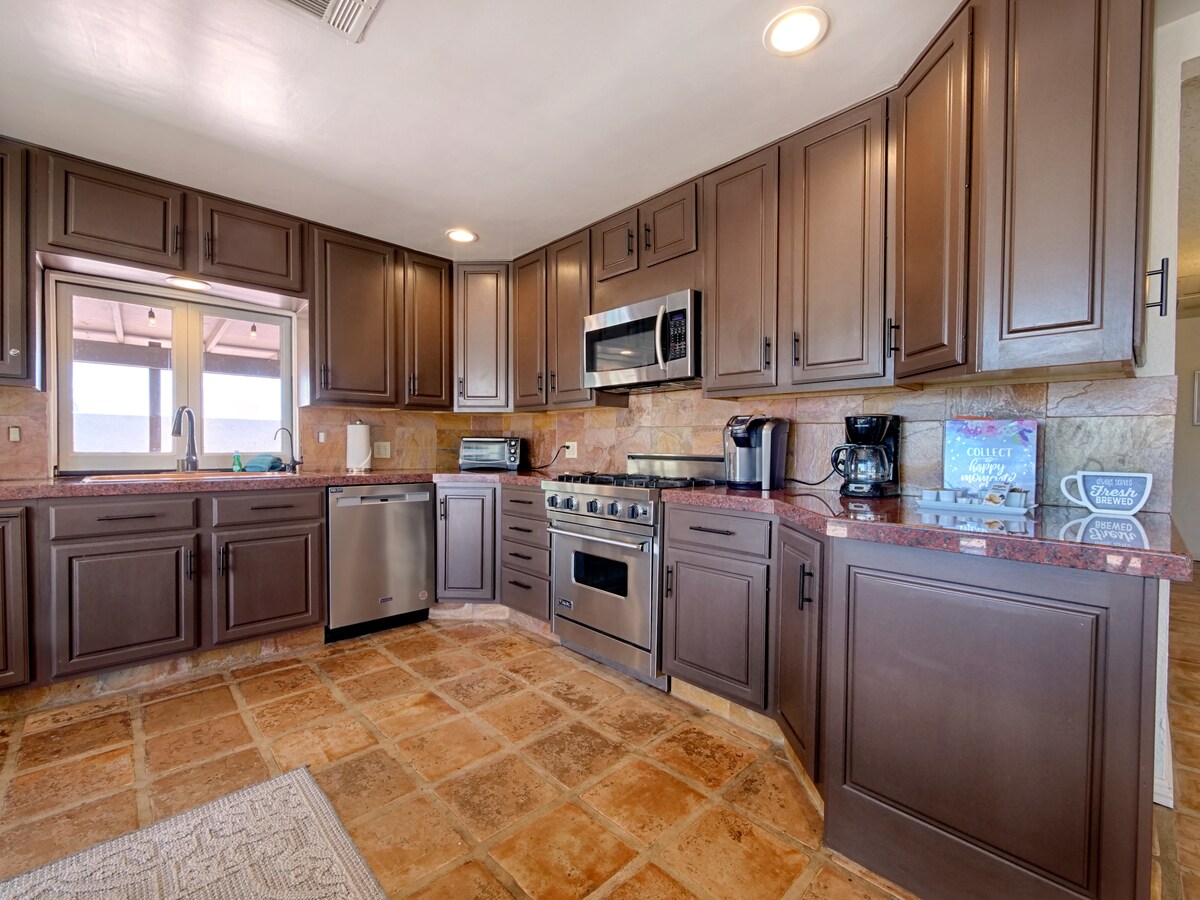 Đẹp cả trong lẫn NGOÀI. Ngôi nhà theo phong cách Tây Ban Nha quyến rũ này ở khu vực Desert Park Estates của Palm Springs có 3 phòng ngủ, 2 phòng tắm, lò sưởi và bếp mở với mặt bàn lát đá granit trong một sa mạc thanh bình xung quanh. Nhà của chúng tôi là nơi lý tưởng cho một kỳ nghỉ ngắn hoặc một kỳ nghỉ kéo dài như một tổ ấm xa nhà. Cuộc sống ngoài trời tốt nhất - có hồ bơi và spa nước mặn quá khổ, có hố lửa và nhiều khu vực chỗ ngồi. Bạn sẽ thích ngôi nhà này!