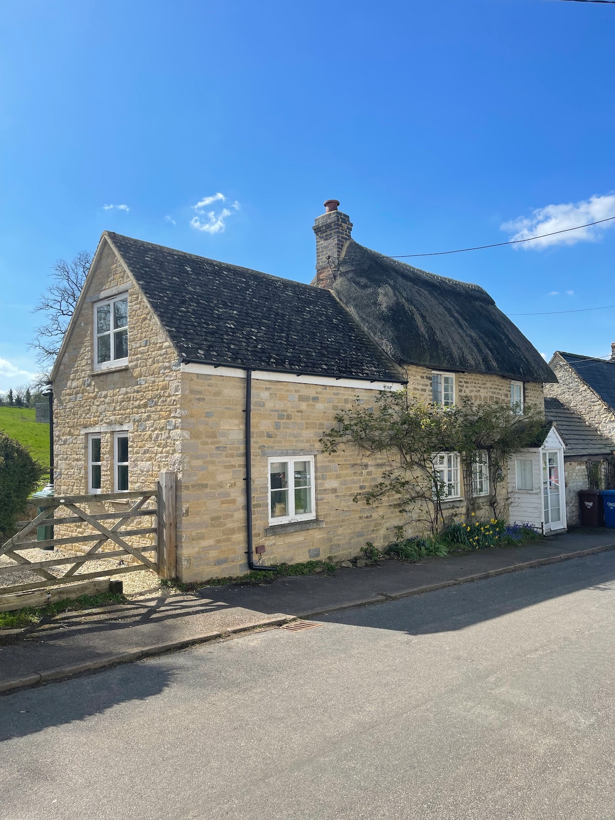 Take it easy at this unique and tranquil getaway. A renovated 200 year old character cottage with a sunny garden and stunning views over the Cherwell valley .3 minute walk to the Oxford canal and perfect for countryside and canal walks . The property is located in the peaceful and picturesque village of Upper Heyford The village is on the edge of the Cotswolds in the Cherwell valley . A classic country retreat