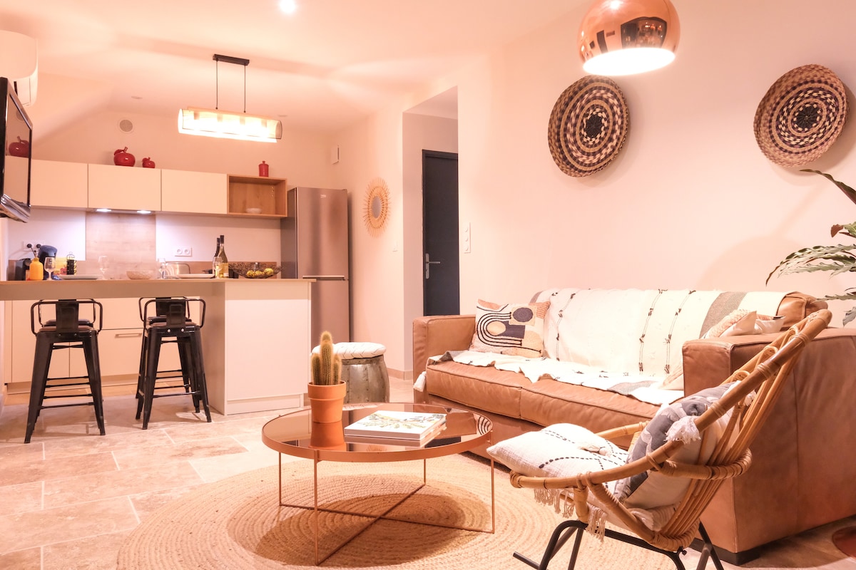 Profitez d'un logement élégant et central face aux Halles de Béziers, élues "plus beau marché de France 2025". Cet appartement de deux pièces climatisé et décoré par une architecte d'intérieur se trouve au quatrième étage. La chambre est au calme et le séjour dispose d'une vue sympa sur les Halles et d''un coin pour travailler. L'appartement dispose d'une salle de bains avec douche à l'italienne et de WC séparés. De plus, rénové en 2025, cet appartement est écologique et classé A+.