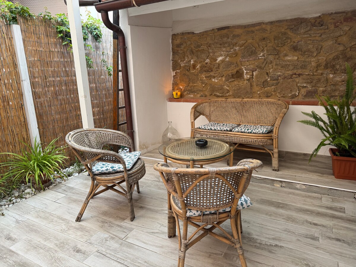 Casa vacanze situata a 200 mt dal mare in zona centrale molto servita da negozi di vicinato. Piano terra rialzato, dotato di giardino privato dove si può pranzare, cenare o semplicemente riposare al fresco di una piacevole brezza di mare. Completamente ristrutturata, rinnovata e curata nei minimi particolari, ha una zona giorno molto ampia ed elegante con una grande vetrata che permette l'accesso al giardino. Cucina nuova dotata di lavastoviglie, due camere e il bagno totalmente rinnovati.