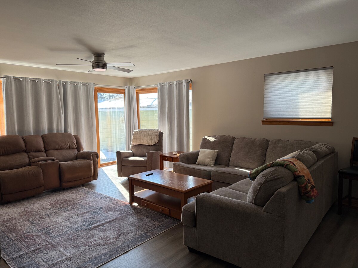 Căn hộ ⭐️ lớn ở tầng dưới cho tối đa 7 người, lối vào ⭐️riêng biệt trong nhà một gia đình trong khu phố cao cấp yên tĩnh. Vỉa hè được 💡thắp sáng. ⭐️Khí trong máy sưởi tường bổ sung nhu cầu sưởi ấm vào mùa đông. Phòng ngủ cho tối đa 7 khách với 🛌1 giường cỡ king (đệm nệm nóng) trong phòng chính, khu vực chung có 🛌 4 giường đôi XL với nệm mút nhớ và Thêm 🛌 1 giường Twin XL trong phòng thưởng. Máy giặt/máy sấy ⭐️ miễn phí trong căn hộ với 3 vỏ xà phòng miễn phí. 👶🏻 Pack n Play ghế 🍼 ăn cho bé.