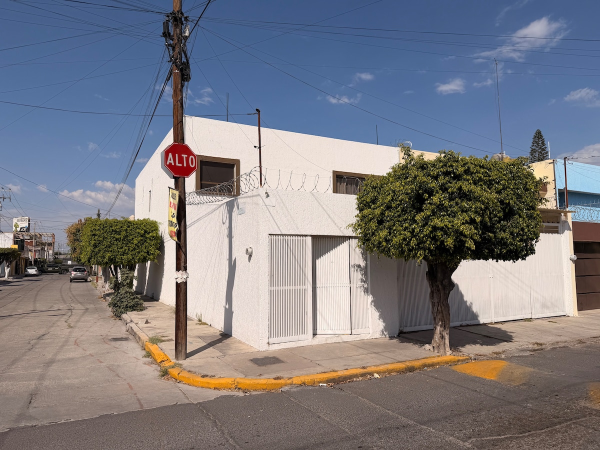 Ngôi nhà thoải mái với 2 phòng ngủ và 2 phòng tắm đầy đủ, nằm trong khu vực trung tâm tốt ở Celaya, chỉ cách lối ra đường cao tốc đến Queretaro 5 phút. Nằm trong một cộng đồng có cổng với an ninh 24 giờ.