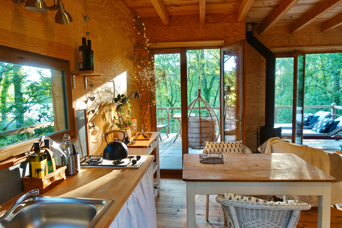 Trải nghiệm một kỳ nghỉ đầy mê hoặc trong cabin của chúng tôi trên những cây sào nằm trong rừng tre. Giữa ao và rừng, tận hưởng sự bình yên tuyệt đối. Thức dậy đối diện với mặt nước, thoát ra bằng thuyền hoặc đọc sách bên bếp đốt củi. Nhà bếp đầy đủ tiện nghi, tầng lửng có tầm nhìn và sân thượng riêng. Gặp gỡ những chú lừa Maxou và Bob của chúng tôi và quan sát động vật hoang dã địa phương. Trải nghiệm cuộc sống chậm với vòi sen riêng cách đó 100 m. Khăn trải giường, gỗ và chào đón nồng nhiệt được bao gồm, chỉ cách Angoulême 25 phút.