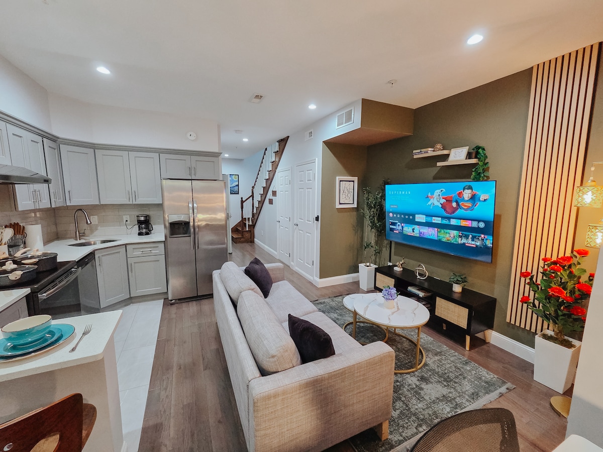 Chào mừng bạn đến với TinyTrinity – một ngôi nhà ba ngôi nhà lịch sử được khôi phục đẹp mắt ở trung tâm Philadelphia. Ẩn mình trên một con phố yên tĩnh, rợp bóng cây chỉ cách các nhà hàng, cửa hàng và di tích lịch sử tốt nhất thành phố vài bước chân, ngôi nhà bốn tầng độc đáo, rộng 500 feet vuông này pha trộn nét quyến rũ cổ điển với những tiện nghi hiện đại. Lý tưởng cho các cặp vợ chồng, du khách đi một mình hoặc các nhóm nhỏ (bao gồm cả những người bạn lông xù), nơi đây mang đến một kỳ nghỉ độc đáo trong một khung cảnh tinh túy của Philly.