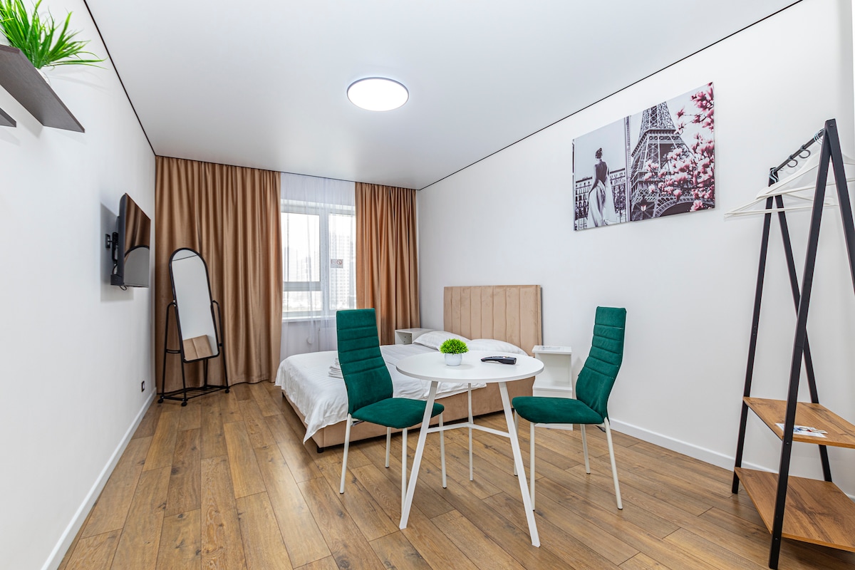 Đại sứ quán Hoa Kỳ ở bên kia đường, cách 2 phút đi bộ. Studio phong cách trong khu vực uy tín. Tầm nhìn tuyệt đẹp từ cửa sổ. Một khu phức hợp dân cư tuyệt vời. Bên trong tòa nhà, ở tầng 6 có một siêu thị mini, không gian làm việc chung, quán cà phê lounge, cà phê mang đi. Gần Đại sứ quán Hoa Kỳ, Nhà thờ Hồi giáo "Hazret Sultan", Cung điện Độc lập, Cung điện Hòa bình và Hòa hợp, Bảo tàng Lịch sử Kazakhstan!