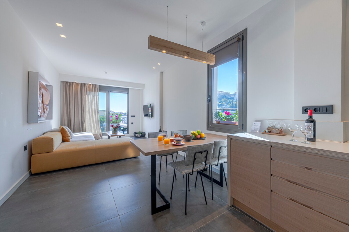 Experience Athens in unparalleled luxury from a spacious apartment, where every room is a window to history! Marvel at the Acropolis from an expansive living area, featuring dual sofa lounges, dining spaces, and a balcony that invites the cityscape. Perfect for professionals, a vast workspace boasts high-speed internet and inspiring panoramic views. Indulge in a modern kitchen, 2 bathrooms, and a sunny bedroom with a queen bed. Embrace the blend of comfort and history in this Athenian retreat!