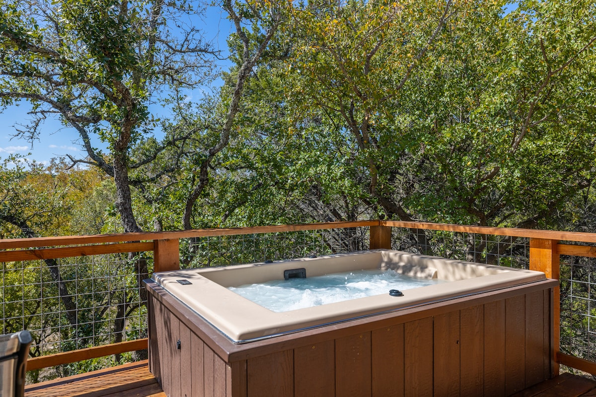 Nhà trên cây Dripping Springs • Hồ bơi nước nóng, Lò sưởi