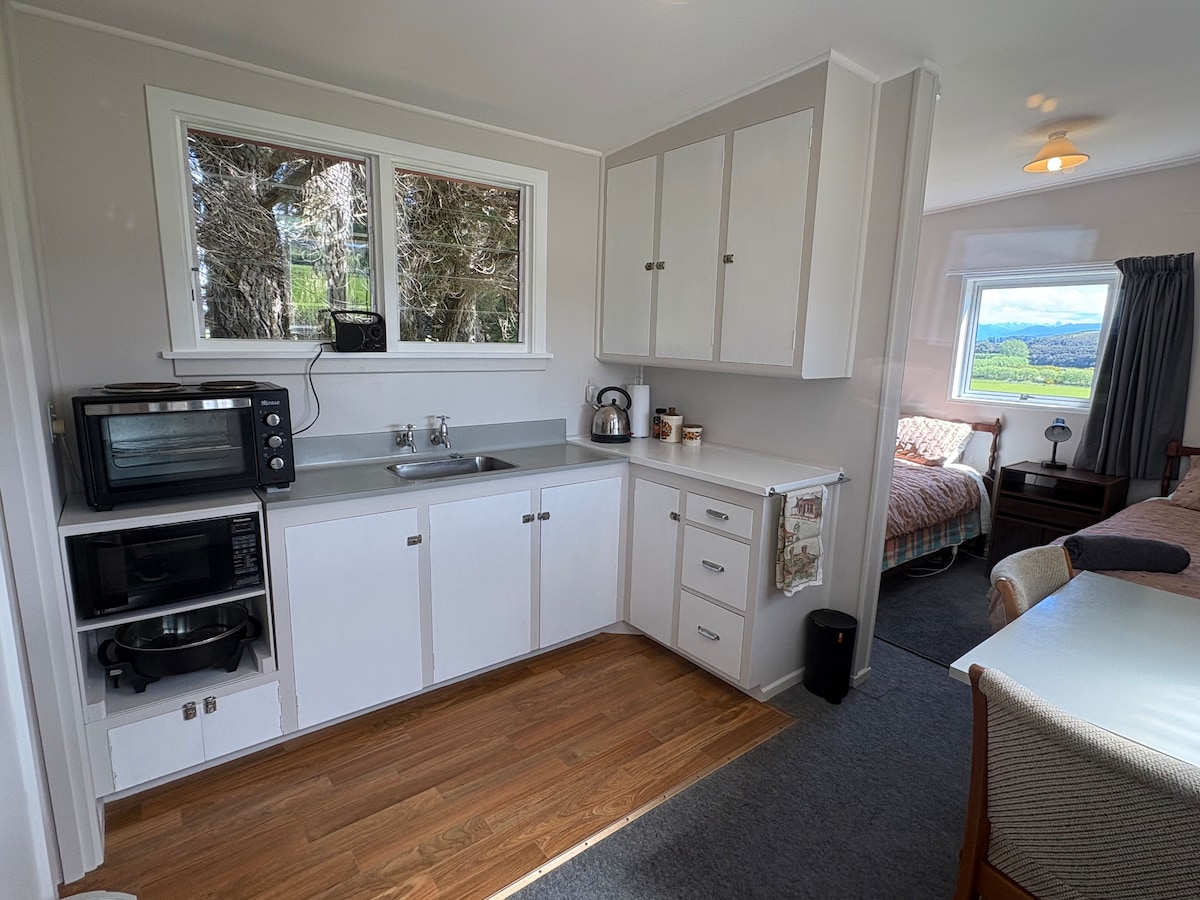 Không gian yên bình, ấm áp và ấm cúng để thư giãn. Nhà nghỉ thôn dã là một phòng ngủ, có giường king và phòng tắm khép kín. Bếp nhỏ có tủ lạnh/tủ đông và máy giặt. Cả phòng ngủ và phòng chờ đều có TV riêng. Wifi miễn phí. Với tầm nhìn ra núi từ phòng khách, nhà nghỉ thôn dã cho phép khách có thêm chút riêng tư và tự phục vụ các bữa ăn nhẹ. Đã bao gồm bữa sáng kiểu lục địa Ngoài ra còn có 2 phòng ngủ lớn để đặt trong nhà của chúng tôi, cả hai đều có phòng tắm khép kín, với giường cỡ siêu King. Kowhai,& Murchison