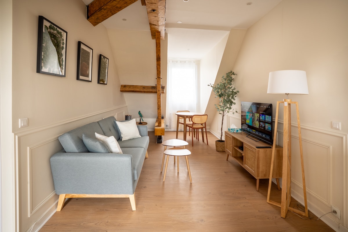 Căn hộ 1 phòng ngủ 🏠 quyến rũ với lò sưởi bằng đá cẩm thạch kiểu Louis XV cổ kính, yên bình, 66m² ở tầng trệt. 📍 Nằm ở siêu trung tâm Amiens, cách phố đi bộ 2 phút đi bộ và cách ga tàu 7 phút đi bộ. 🅿️ Bạn có thể đỗ xe miễn phí trên đường phố hoặc tại bãi đậu xe xiếc chỉ cách 50 mét. Căn hộ sang trọng này nằm giữa các cửa hàng, nhà hàng, quán bar, rạp chiếu phim và bầu không khí sôi động của Amiens. Lý tưởng cho một kỳ nghỉ thú vị hoặc để làm việc trong yên tĩnh.