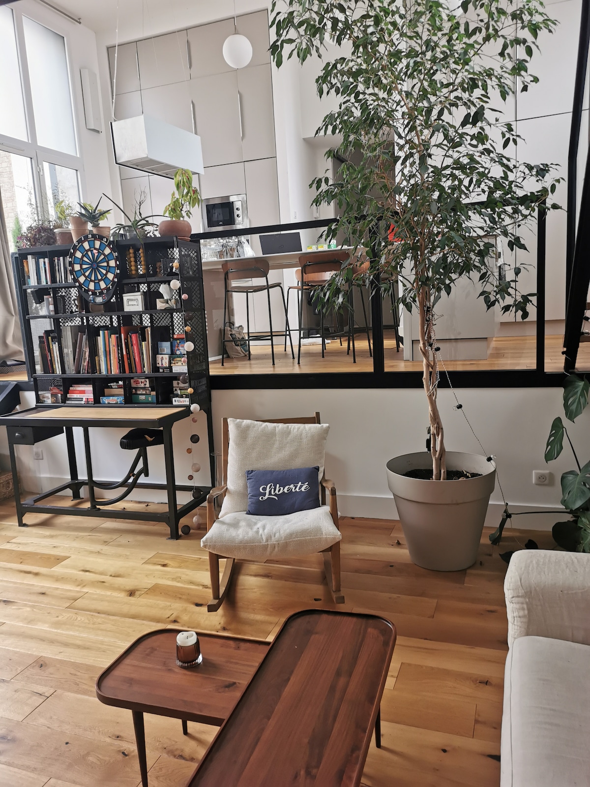 Căn hộ kiểu gác xép được tân trang lại dễ chịu nằm ở tầng một (không có thang máy) ( cộng với cầu thang thứ hai trong căn hộ , ) phòng khách lớn với nhà bếp mở, hai phòng ngủ mỗi phòng có phòng tắm vòi sen, tất cả đều có điều hòa không khí gần Nhà thờ Reims. Căn hộ được trang bị: Máy pha cà phê Nespresso, ấm đun nước, máy nướng bánh mì, máy rửa chén, máy giặt/máy sấy, bàn ủi, bàn ủi, máy sấy tóc, ga trải giường (ga trải giường và khăn tắm)