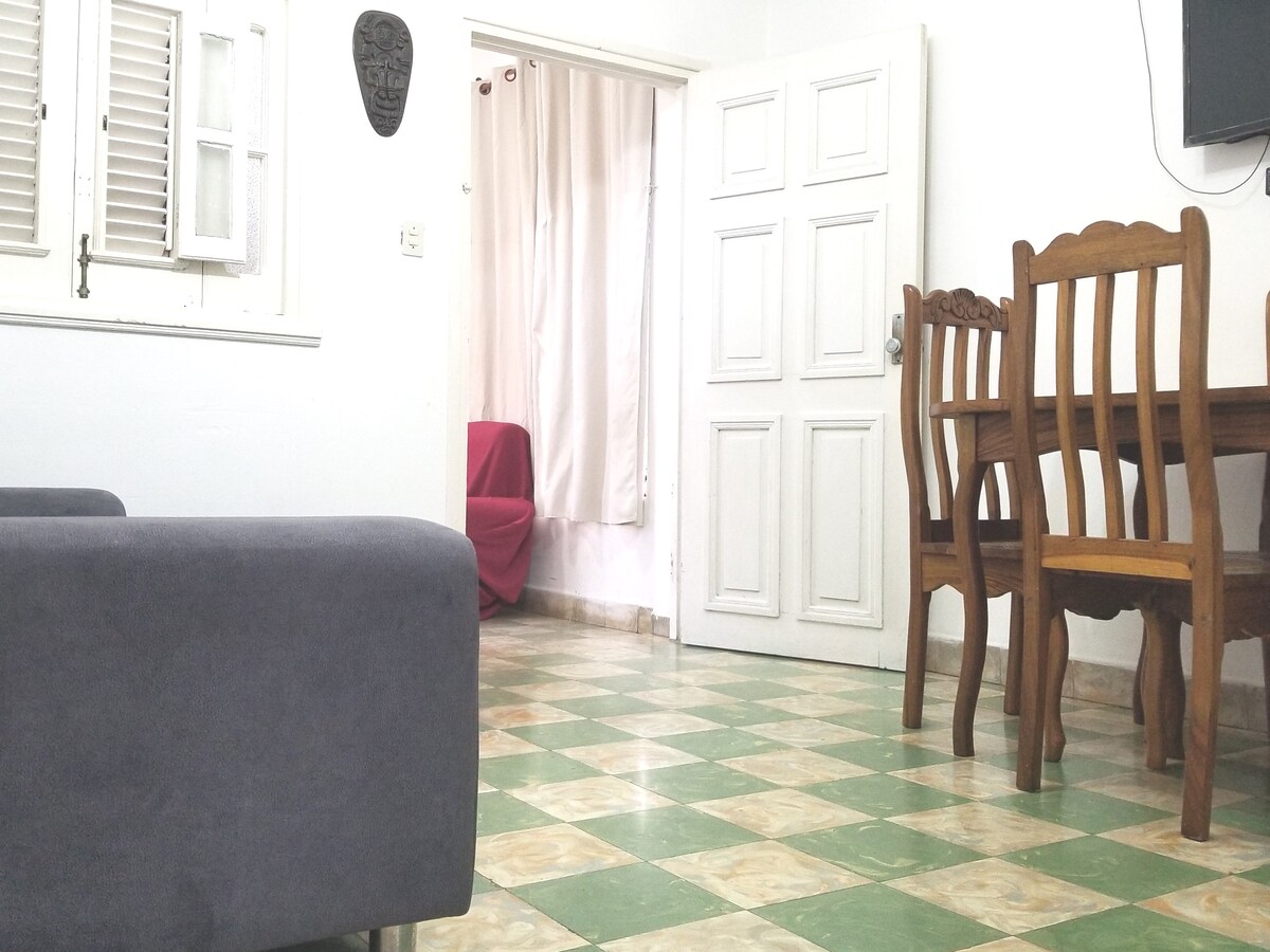 El apartamento está conformado por sala comedor,un dormitorio,cocina y baño.Una cama camera y una cama individual para niño. El niño tiene que formar parte de la reservación. Es totalmente independiente y con el confort necesario,agua fría y caliente,climatizado. Hasta el apartamento hay tres tramos de escalera.Esta ubicado a solo dos cuadras y media del Capitolio Nacional y a 100 metros de los puntos de salida de taxis y bus. (Algo importante:No hay cortes de electricidad,).