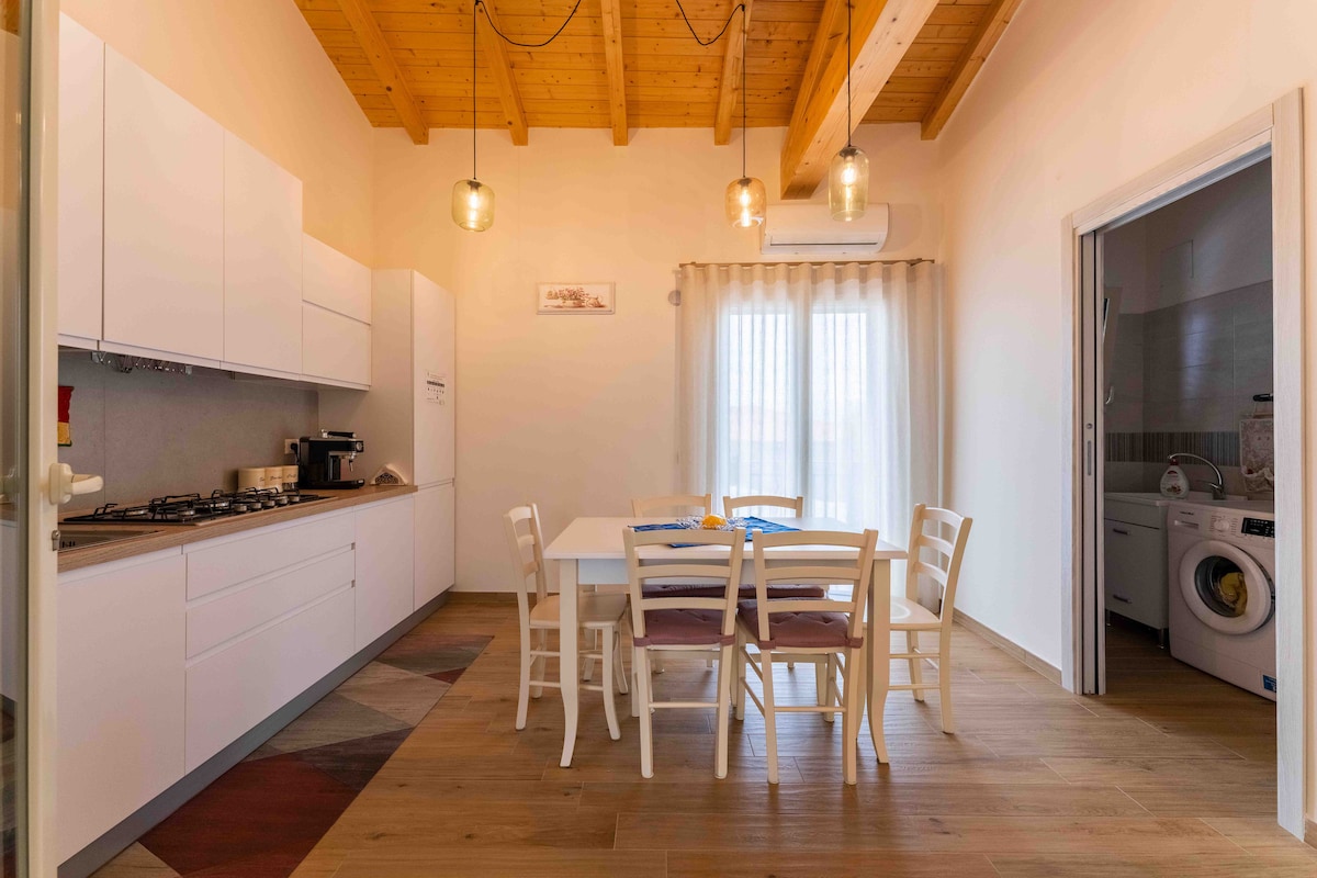 The AGRICULTURAL LANDSCAPE becomes a lush garden, and being a guest will be your exclusive privilege. You can stroll, enjoying nature and DISCOVERING BIODIVERSITY, pick your own fruit, and request a TASTING OF OUR WINE. Inside the house, you'll find every comfort, but you won't be able to miss out on a dinner under the stars on the terrace in the evening, or perhaps even waking up early to catch a sunrise on the horizon. The house is the ideal place for holidays or work, for SHORT or LONG STAY.