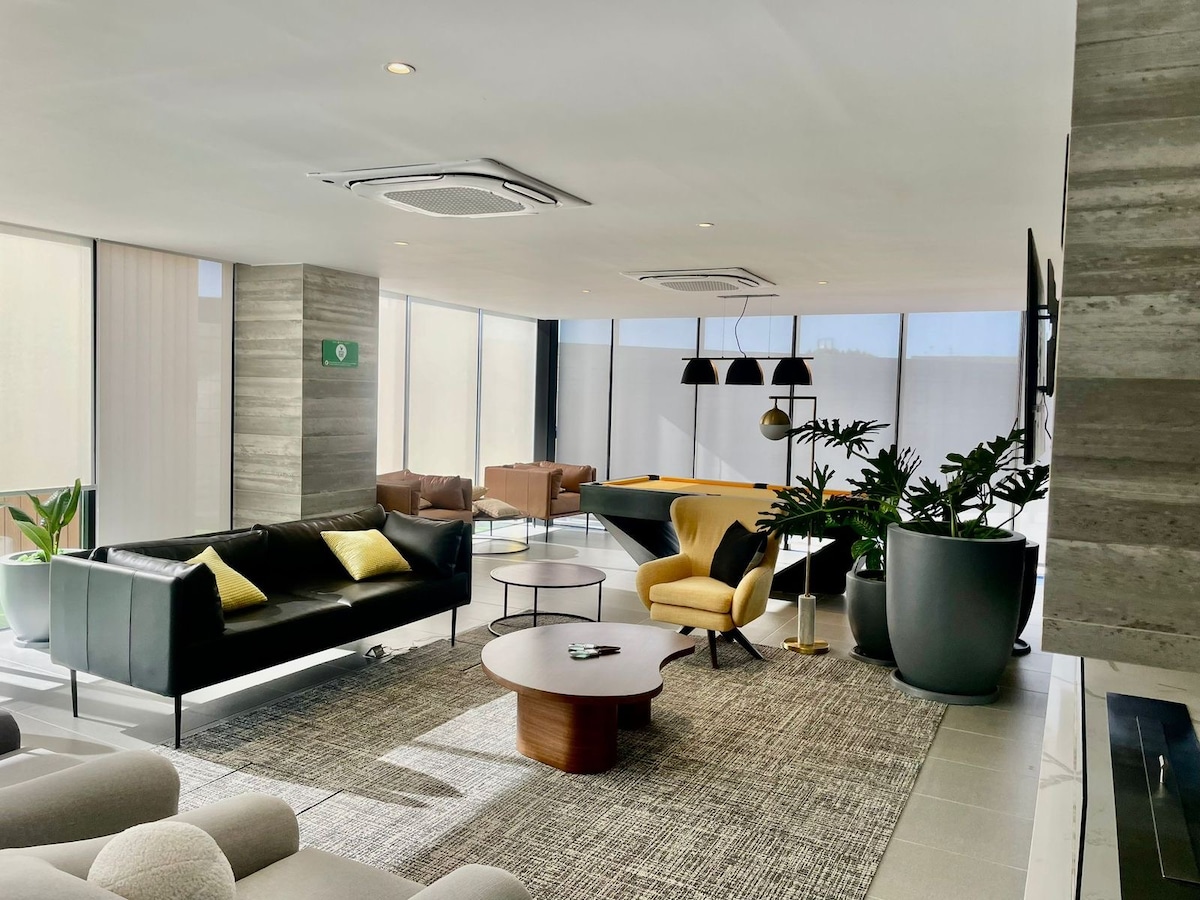 Trải nghiệm trực tiếp Tijuana Zona Dorada! Tòa nhà MỚI và sang trọng nằm rất tốt cách CAS 7 phút đi bộ để xử lý thị thực và cũng chỉ vài phút đi bộ đến trung tâm mua sắm mới nhất và sáng tạo nhất của Tijuana Plaza Landmark. 15 phút từ ngã ba Hoa Kỳ San Diego 20 phút đến sân bay Tijuana và CBX!! Cũng gần các nhà hàng và quán bar có chất lượng và danh tiếng cũng như sân vận động bóng đá và sòng bạc "Caliente" Rất dễ sử dụng Uber, chúng tôi có bãi đỗ xe có mái che, an toàn và riêng tư.