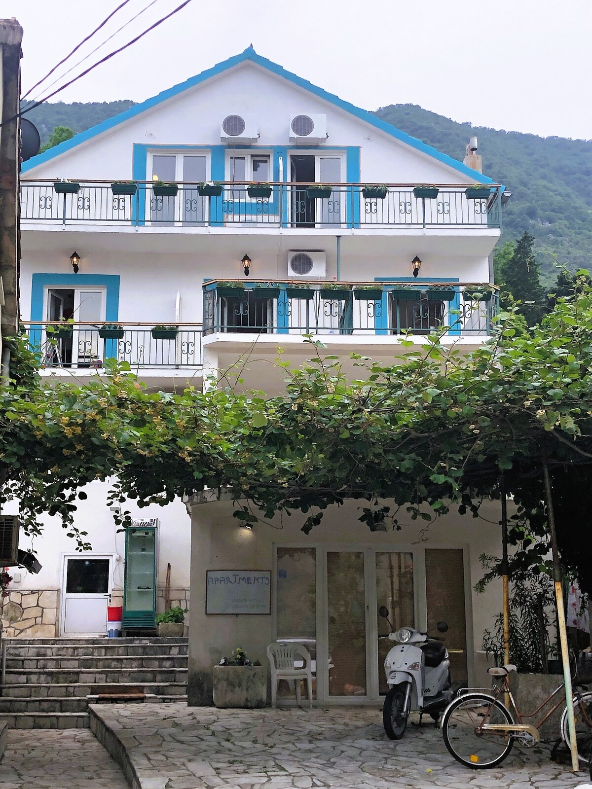 There are 5 rooms with kitchens in our hotel. In addition to being 10 minutes away from Kotor Old Town by car, the sea will be under your feet at all times as it is only 300 meters away from the beach. You will feel the historical breeze in a 150-year-old stone building. In our beautiful large garden, open air and nature are intertwined, and I aim to welcome our guests most sincerely and offer one by one communication every time.