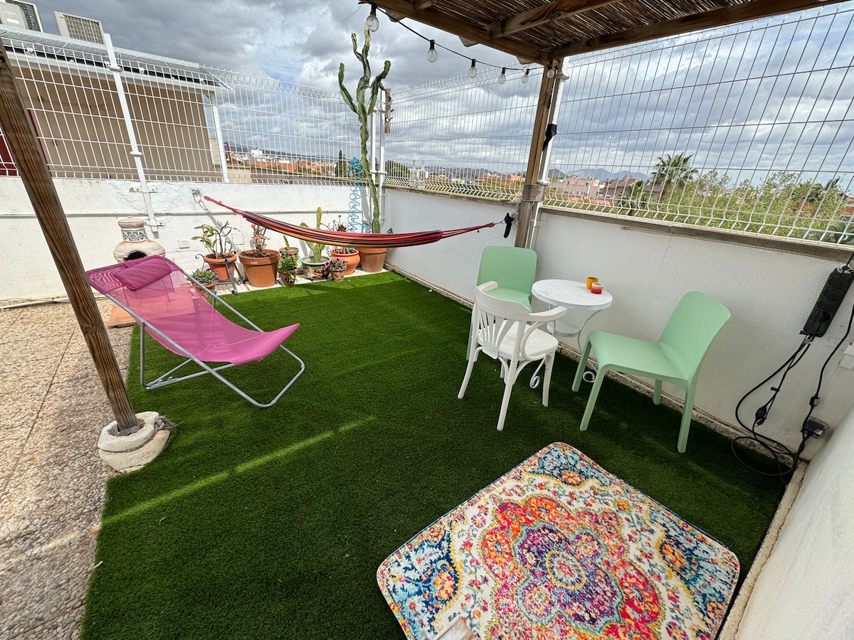 tầng lửng 17 mét với một phòng đơn, bồn rửa mặt với vòi sen, bếp nhỏ để nấu các bữa ăn đơn giản. Nó có sân thượng 70 mét VỚI SPA-JACUZI (luôn hoạt động, ngoại trừ chi tiết) NẰM cách Arrixaca 10 phút đi xe hơi , cách trung tâm thành phố 20 PHÚT đi bộ Không NÊN DÙNG cho những người rất cao. Không NÊN DÙNG cho người cao tuổi trên 65 tuổi CHỈ DÀNH CHO KHÁCH CÓ QUYỀN TRUY CẬP HẠN CHẾ CHÚNG tôi không Ở TRUNG TÂM ,nếu BẠN ĐANG TÌM KIẾM một AIRBNB TRUNG TÂM, ĐÂY không phải LÀ ĐIỂM ĐẾN của bạn, LÝ tưởng ĐỂ nghỉ ngơi