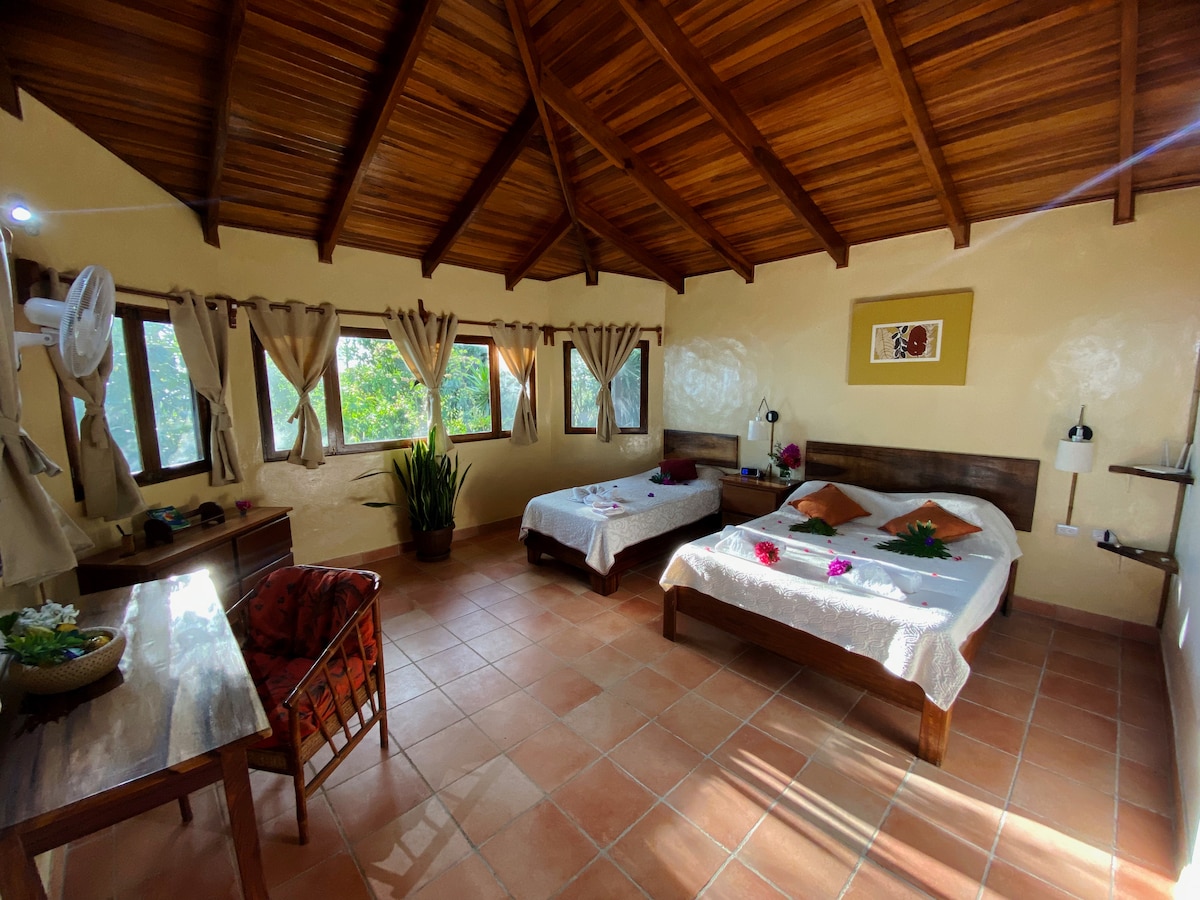 Nhà nghỉ riêng của chúng tôi "ở" cho 5 người, mang đến tầm nhìn ngoạn mục ra Thái Bình Dương, những tán cây và Quần đảo Tortuga. Hãy tưởng tượng bạn thức dậy và sau vài bước chân, lặn vào một hồ bơi nước biển tuyệt đẹp hướng ra biển. Sau một lớp yoga, bữa sáng hữu cơ, do đầu bếp Chris của chúng tôi nấu tại chỗ được phục vụ. Khám phá Costa Rica như bạn chưa từng thấy trước đây. Chúng tôi thiết kế các chuyến du ngoạn theo mong muốn của bạn.
