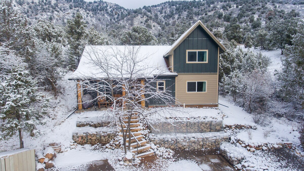 Nhà gỗ của chúng tôi có diện tích hơn 3000 feet vuông và sẽ đón tiếp tối đa 8 khách một cách thoải mái. Canyon Creek chạy cạnh khu nhà và cung cấp một khung cảnh đẹp cho kỳ nghỉ của bạn. Bếp đầy đủ với lò nướng đôi và lò vi sóng. Sân ngoài trời hoàn hảo cho chuyến phiêu lưu mùa hè của bạn. Chúng tôi cách trung tâm Glenwood Springs 10 phút về phía tây, ngay gần Interstate 70. Dễ dàng ra vào nhà. Thị trấn New Castle cũng cách nhà 10 phút về phía tây.