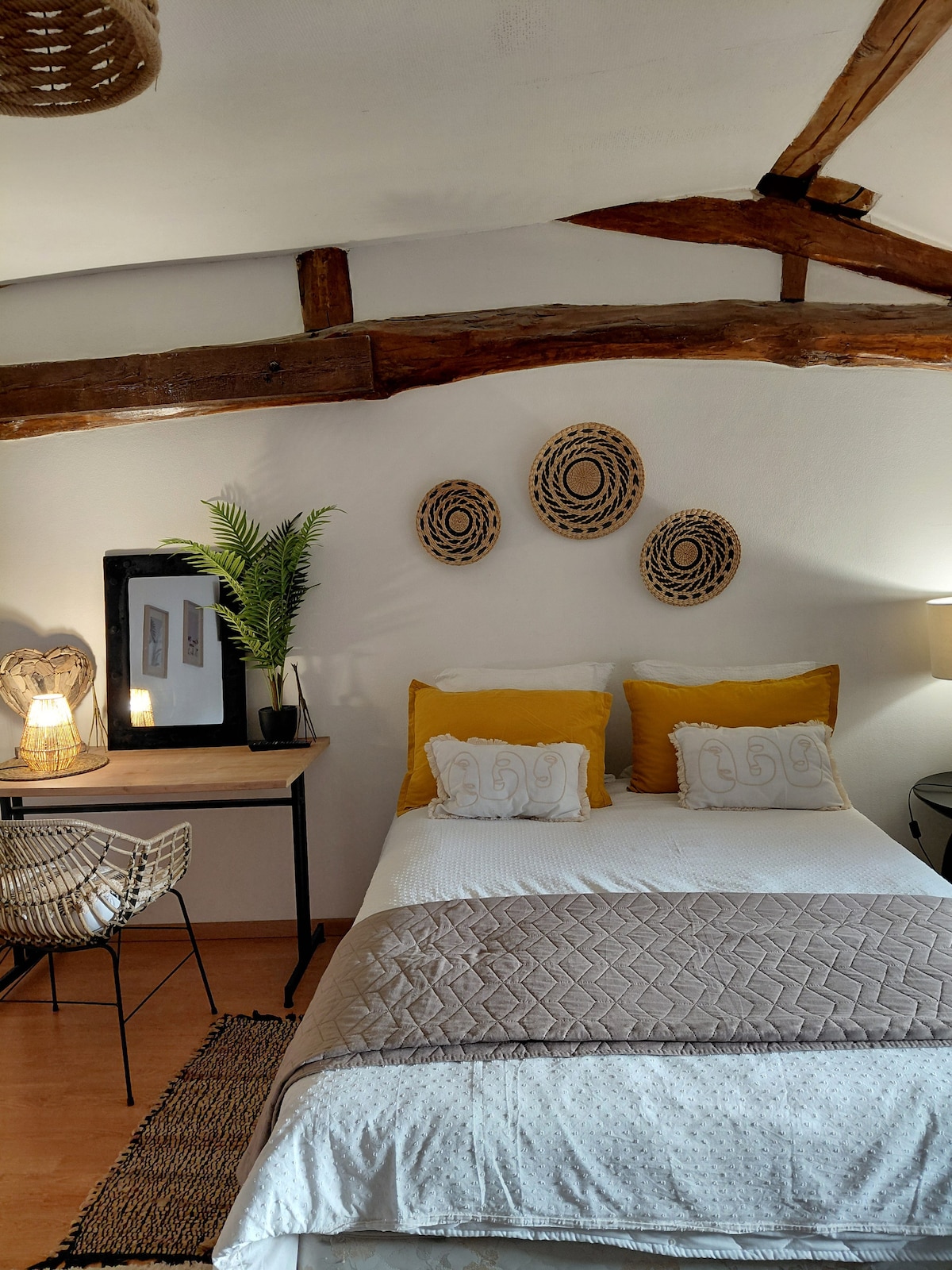 Chỗ ở có lối vào nhà riêng biệt với một phòng tắm vòi sen nhỏ và nhà vệ sinh liền kề phòng ngủ. Bạn có quyền sử dụng khu vực bếp riêng, có sẵn máy giặt của gia đình. Một sân thượng nhỏ và khu vực ăn uống ngoài trời dành cho người thuê nhà. Gần đó, các cửa hàng cũng như Capitole và Hội chợ Châlons, 5 đến 10 phút đi bộ. Bạn sẽ có cơ hội đỗ xe trong sân. Trà, cà phê có sẵn.
