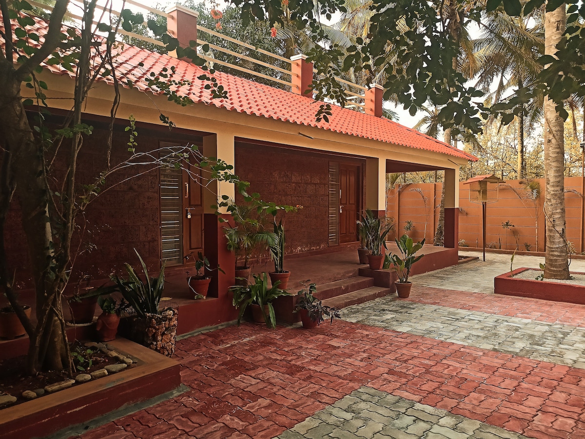 Chào mừng bạn đến với Hasiru, một ngôi nhà yên bình, độc lập trong một cộng đồng có cổng an toàn. Được bao quanh bởi cây xanh, nơi đây có khu vực sinh hoạt rộng rãi, bếp đầy đủ tiện nghi, phòng ngủ ấm cúng, Wi-Fi nhanh và vườn riêng - hoàn hảo cho các gia đình, cặp đôi hoặc người làm việc từ xa. Tận hưởng sự riêng tư và an ninh 24/7, chỉ cách Cung điện Mysore và Đồi Chamundi 20 phút. Hasiru là nơi nghỉ ngơi lý tưởng của bạn, nơi sự thoải mái hòa quyện với thiên nhiên.