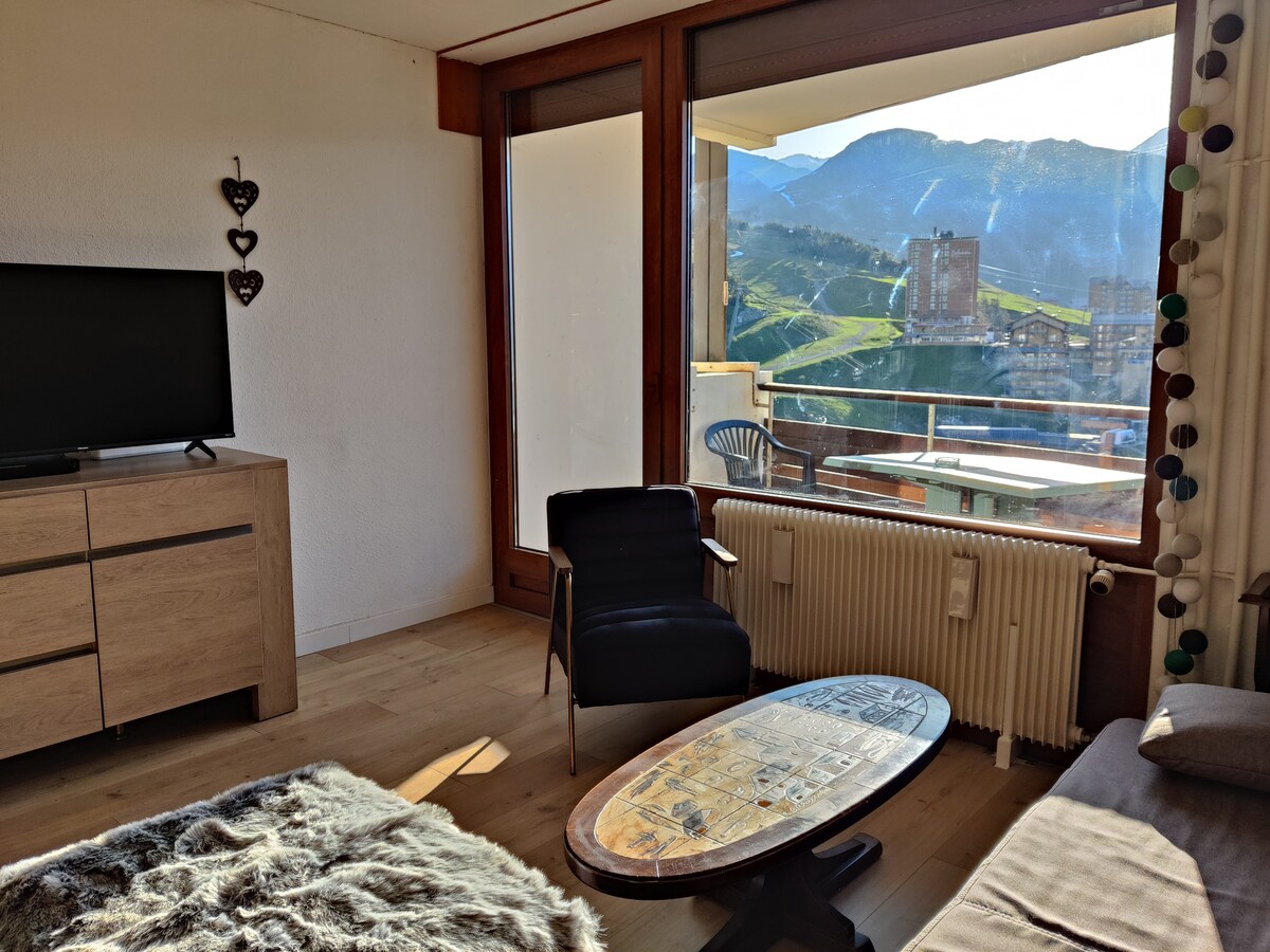balcon sud-belle vue montagne Coin montagne (2 lits superposés) Salon séjour avec bz (140x190) Télé nombreux jeux de société Pensez à mener votre linge de maison et toilette (draps - taies oreillers - torchons - serviettes de toilettes - gel douche shampoing …) Point de vigilance: pas de prestation de ménage offerte pour ce logement, vous devrez obligatoirement réaliser le ménage de tout le studio vous-même, même pour 2 nuits passées. Tout sera à votre disposition. Parking payant en saison.