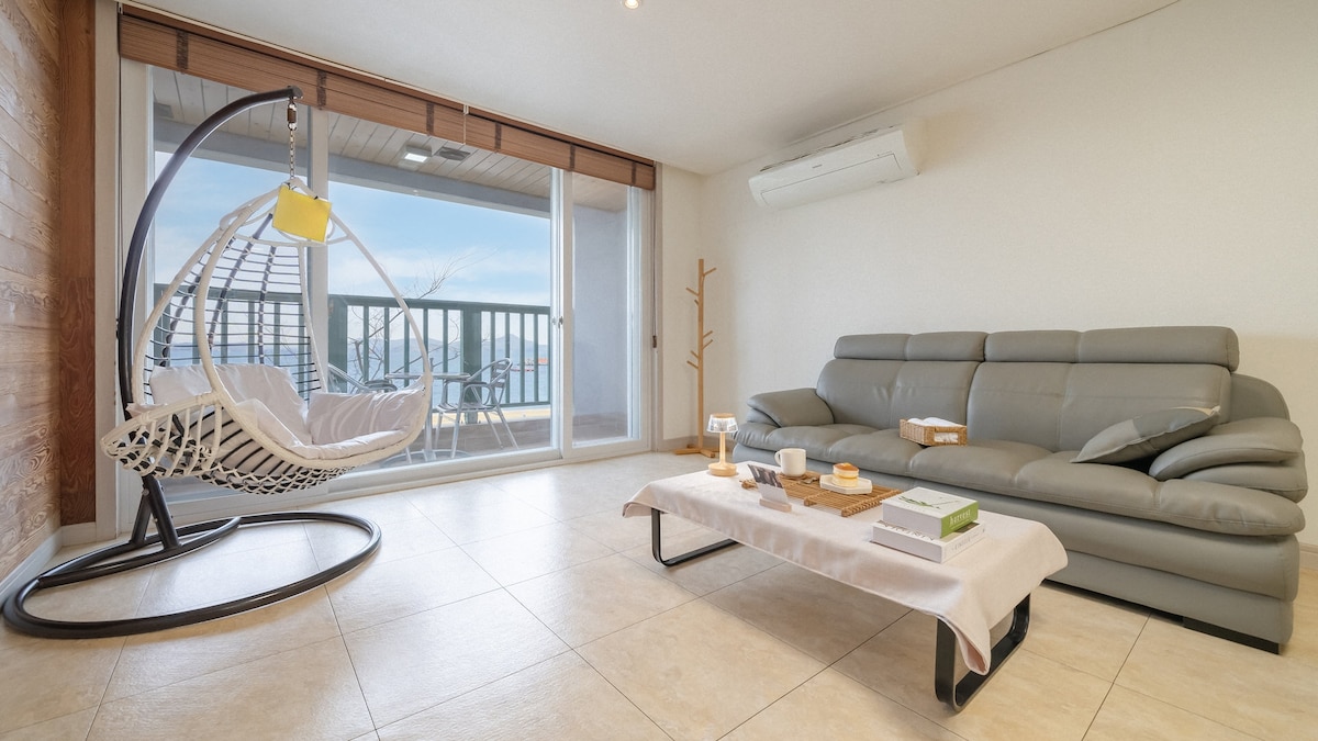 A peaceful seaside escape overlooking Songdo Beach and the stunning ocean cable car. Just an 8-minute walk takes you straight to the sea. Please note: You’ll need to climb about 50 steps from the main road — but the sweeping views of the ocean and the beach make it all worth it. **Free pickup available for stays of 2 nights or more. & Luggage pickup is also possible! ** Long-term stay discounts available — contact host for details