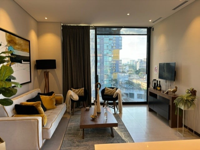 Estamos comprometidos en que tu estancia sea 100% placentera, cuidando cada detalle en limpieza y servicio. Al llegar disfruta la hermosa vista desde el balcón con una botella de vino de cortesía. Ubicado en la mejor zona de Guadalajara, a solo 5 minutos caminando del Corredor Chapultepec, nombrado por Time Out como el vecindario más cool del mundo, rodeado de excelentes restaurantes y vida nocturna. Lo suficientemente cerca para disfrutarlo y lo suficientemente lejos para descansar sin ruido.