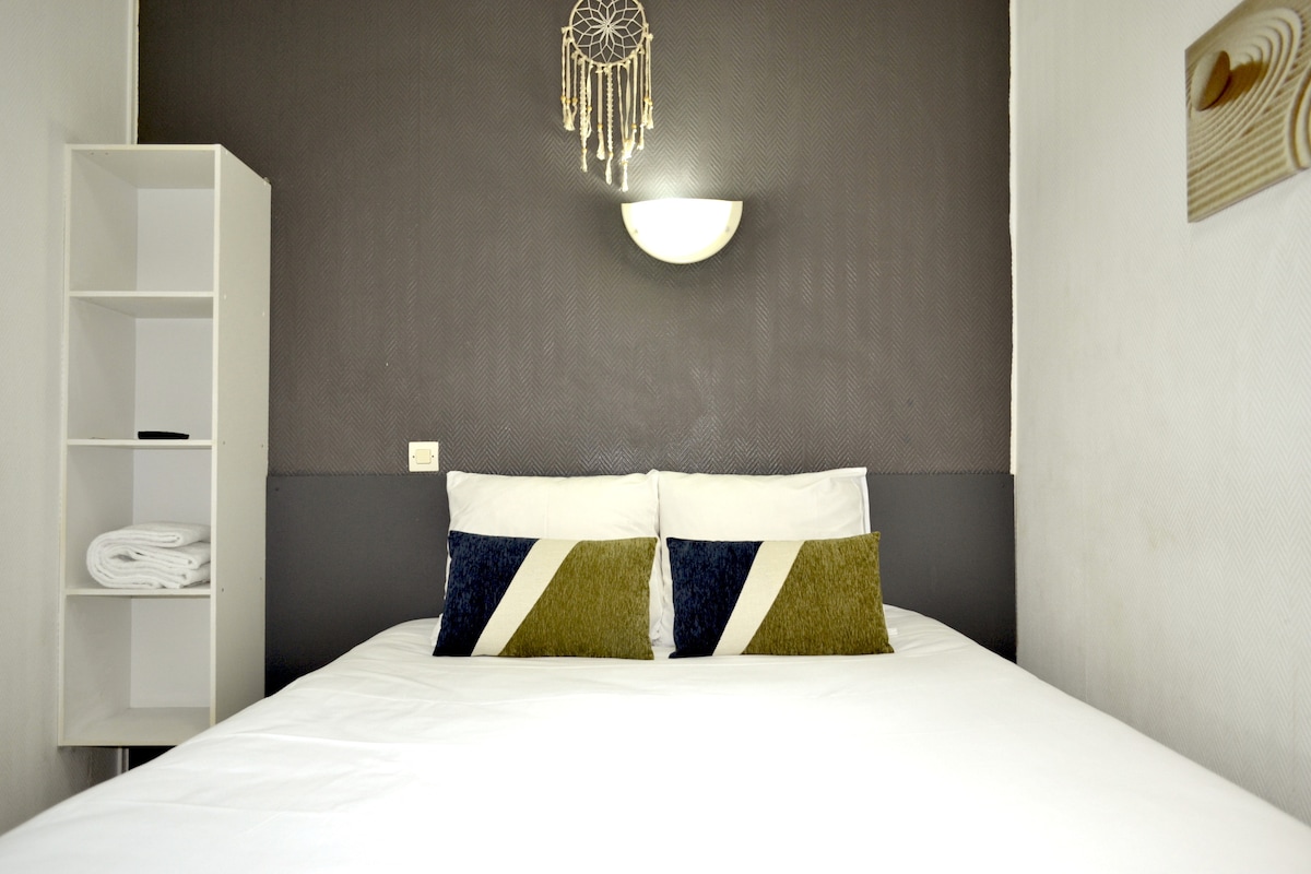Accostage Hotel welcomes you in a neat decor in the residential area of Mail, 200 meters from the beach of La Concurrence, 50 meters from the sea and the Casino, near the historic center of La Rochelle. Our double rooms for 1 or 2 people are equipped with a large double bed with premium bedding and an office area on the 3rd floor of the property. Attention, we do not have an elevator. The private bathroom has shower, toilet, hairdryer.