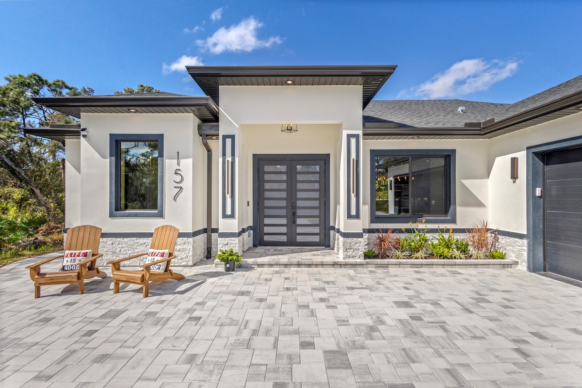 Escape to your dream getaway in our brand-new, Airbnb haven. Nestled on 5 sprawling acres, this serene retreat offers breathtaking lake views and an enchanting woodland backdrop, promising the perfect blend of tranquility and adventure. 2 Minutes to the Babcock Ranch Community, 10 minutes to the interstate, and 20 min from downtown. Our home has every detail thoughtfully crafted to provide you with a comfortable & memorable stay.